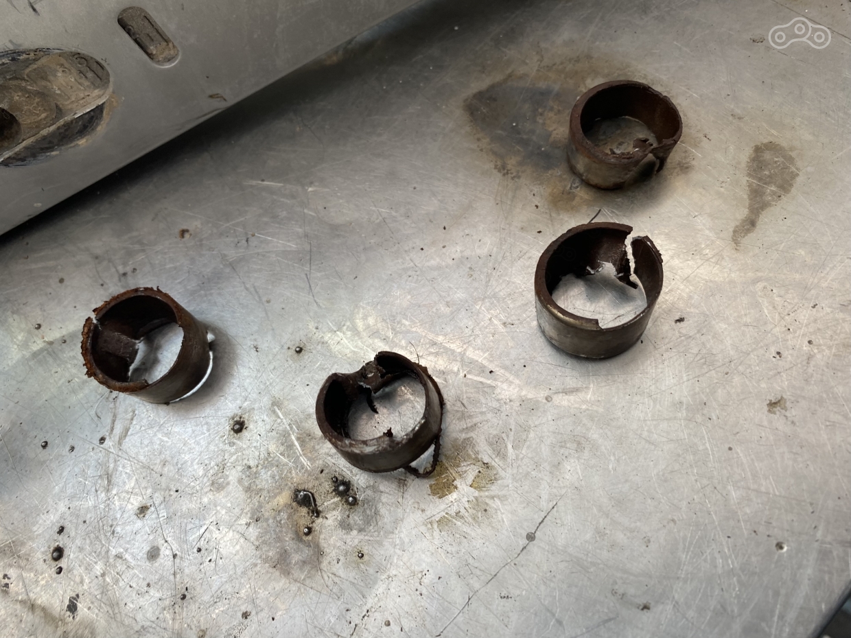 А тут - привет, совсем катастрофа. Высыпалось. Разобрал. Помимо подшипников померли и втулки, которые нужно либо заказывать у дилера по 85 евро штука, либо точить у токаря.