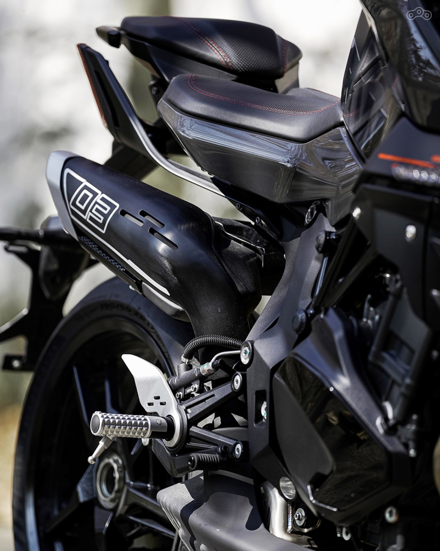 В остальном — плоть от плоти флагманского спортбайка QJMOTOR: 128 л.с. и 93 Н·м, чуть больше трёх секунд до «сотни», полный набор ездовой электроники с двусторонним квикшифтером, лонч-контролем и «угловой» ABS, комбинированная рама с настраиваемыми подвесками Marzocchi и зверские моноблоки Brembo Stylema спереди. Плюс приятный ритуал запуска рядной «четвёрки», когда сперва нужно вонзить ключ в замок зажигания, дождаться, пока бензонасос прокачает первую дозу топлива, и лишь затем нажать на кнопку стартера. Двигатель — шедевр.