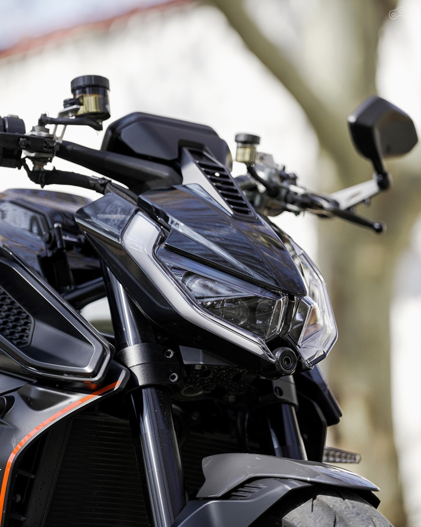 С этим трудно поспорить. Причём данный посыл стал очевиден уже на миланском салоне EICMA в 2024 году, когда Мортон вместе с первыми лицами QJMOTOR представил концептуальный гипер-нейкед RAW. Прототип будущего «раздетого» флагмана линейки SRK получился столь оригинальным и эмоционально насыщенным, что даже в статике вызывал бурю чувств, транслируя сочащуюся из него агрессию. Настоящий монстр — гибрид Чужого и самурая в полном боевом облачении: из каждого фрагмента минималистичной облицовки торчало что-то колюще-режущее. Так что решение о серийном производстве компания приняла практически сразу — и с минимальными изменениями.