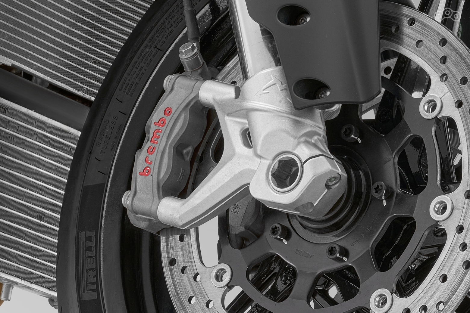 Абсолютная мощность впечатляет, но она должна сочетаться с точным контролем и предсказуемостью. Именно поэтому SRK 921 оснащён четырёхпоршневыми радиальными моноблоками Brembo Stylema и парой плавающих дисков Ø320 мм на передней оси. В сочетании с главным цилиндром радиального типа Brembo такая конфигурация обеспечивает образцовую связь между усилием на рычаге и фактическим замедлением. Антиблокировочная система Bosch 9.3 MP учитывает угол наклона мотоцикла и позволяет безопасно тормозить даже в поворотах.