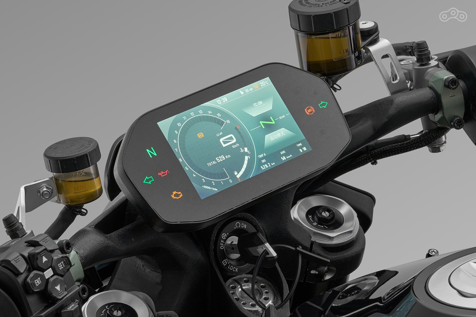 Цветной TFT-дисплей SRK 921 реализует современную концепцию индикации и управления, подкупая наглядностью, интуитивной логикой и высоким качеством отображения. Он позволяет гибко настраивать параметры мотоцикла, адаптируя их под погодные условия и индивидуальные предпочтения райдера. После подключения смартфона открывается расширенный набор функций, включая интеграцию телефонных вызовов и полноценную навигацию через приложение Carbit Ride.