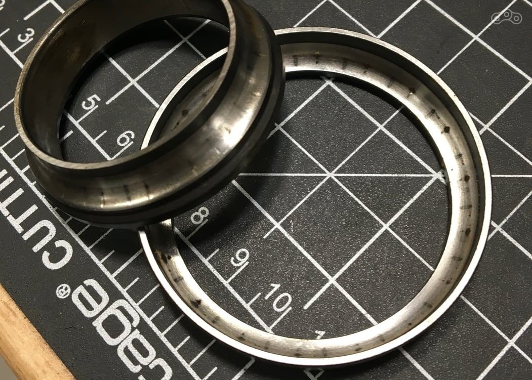 Вот к чему со временем приводят постоянные нагрузки и повторяющиеся удары по закалённым обоймам подшипников. Каждая такая вмятина со временем превращается в канавку, из которой шарик подшипника выбирается с трудом.