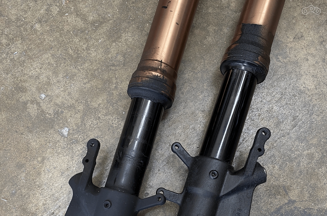Что может быть хуже, чем потёкшие сальники вилки, ухудшающие управляемость мотоцикла? Потёкшие сальники вилки, из-за которых масло попадает на тормоза.