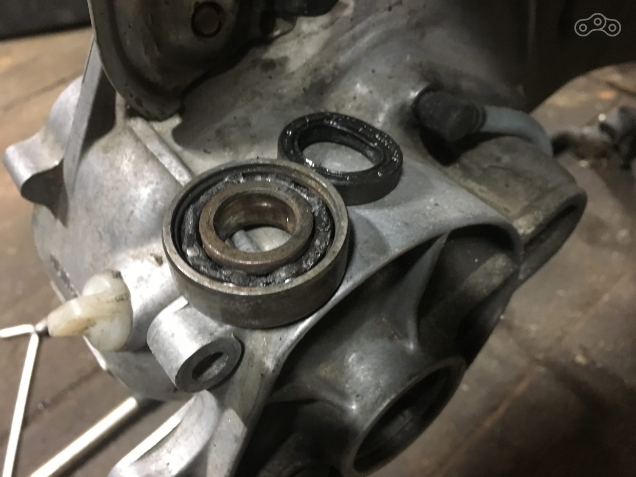 А вот и первый хедлайнер сегодняшнего вечера - подшипник первичного вала, ставший причиной течи сальника. Но щелкал не он, он тихонечко шуршал и мог бы шуршать еще много-много времени.