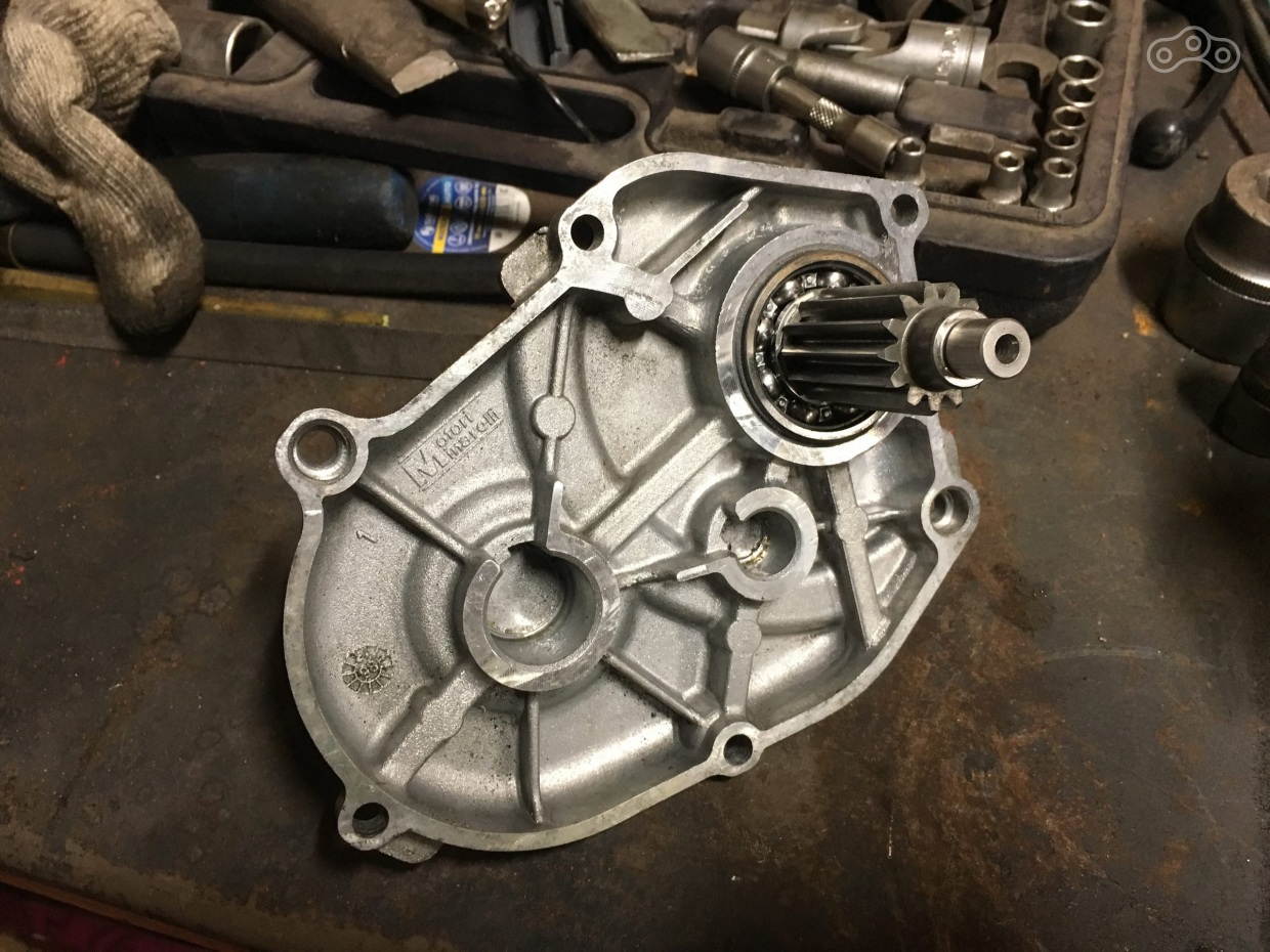 Сборка редуктора - отдельный вид развлечений. Даром, что устроен он незамысловато, собрать его по уму та еще задача, по крайней мере для меня. Закупив все необходимое приступил. Отмыв все до блеска приступил, начал с подшипника и сальника вторичного вала. Тут ничего сложного, главное - правильно поставить сальник, пружиной внутрь - те, кто собирал редуктор до меня, почему-то врали его не той стороной.