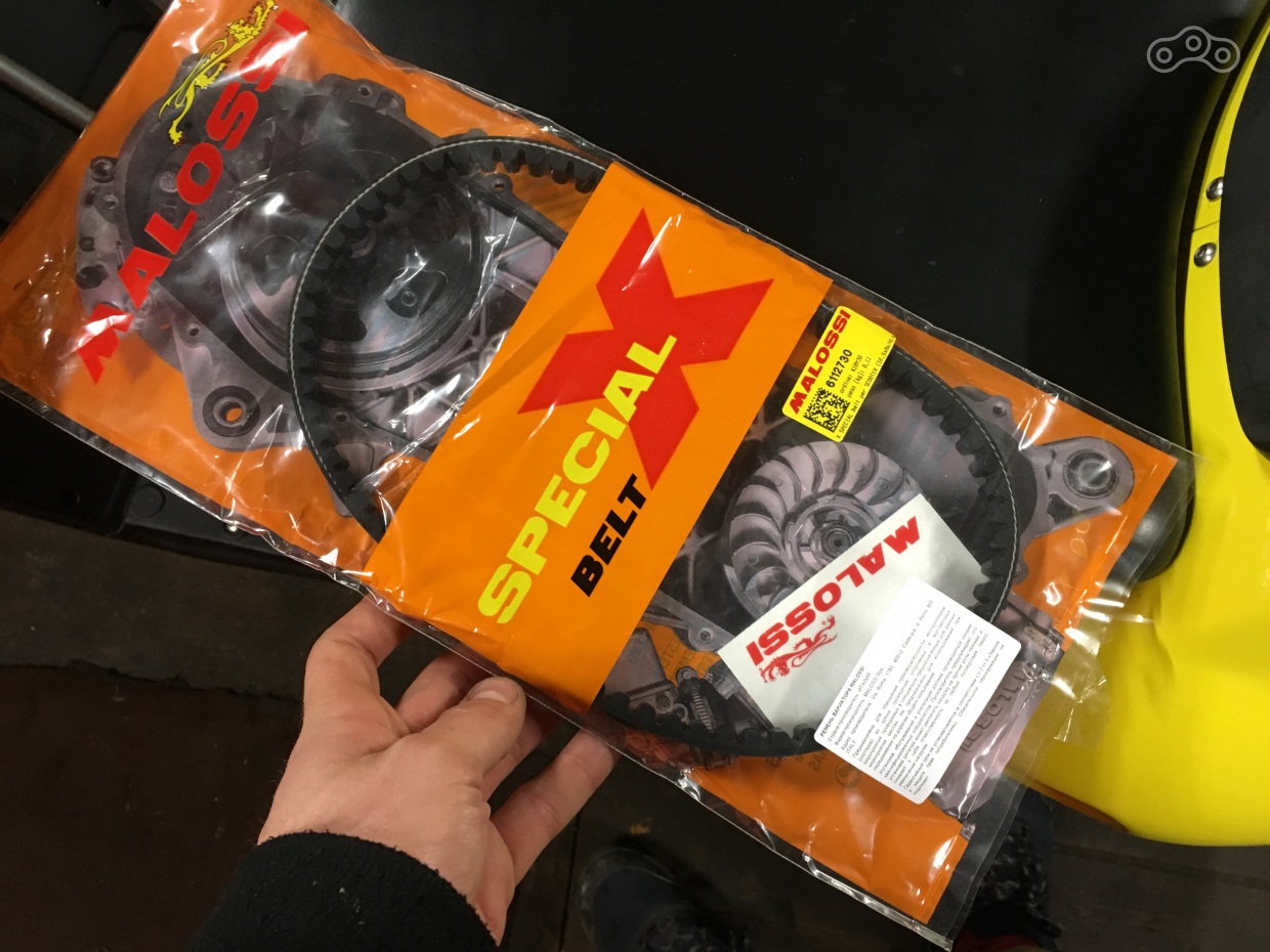 До меня, наконец, доехал новый ремень. Взял обычный Malossi, с кевларом решил не экспериментировать - совсем уж диких нагрузок у меня нет, а изнашиваться вариатор на обычном ремне, по моим представлениям, должен меньше.