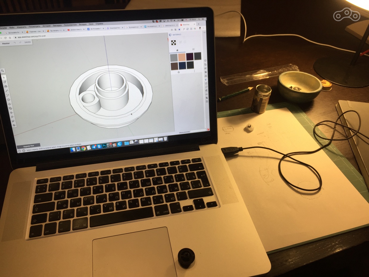 Снял деталь, обмерял штангенциркулем (этот навык тоже пришлось восстанавливать практически с нуля), набросал на бумаге чертёж и замоделил всё это хозяйство в Скетчапе (самое дружелюбное для нубов имхо, теперь и в браузере).