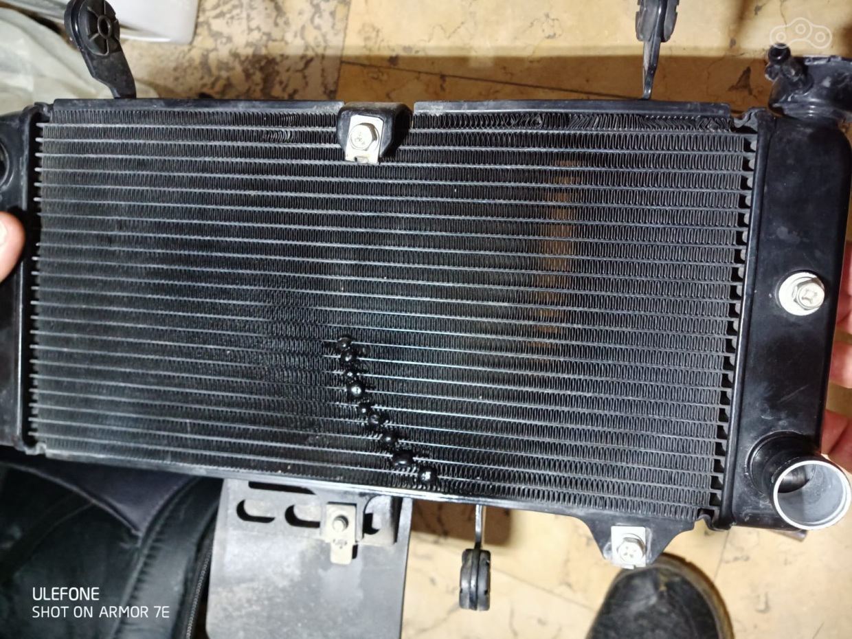 В прошлой записи про цепь я написал что мот упал на ровном месте но ничего не случилось. Так вот случилось но не сразу всплыло !! На следующий день поехал и не заметил как вентилятор цепляет радиатор, так нацеплял что протерлась дырка.