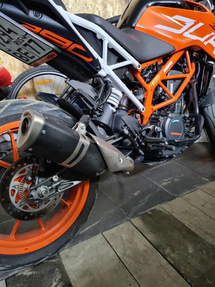Собственно убрал банку выхлопа, её крепление и подножки пассажира. Вместо банки поставил какой-то "свисток" с Али. Были опасение что получится громковато, но громче стало совсем чуть чуть, звук просто стал немного резче. Похудевший хвост смотрится лаконично.