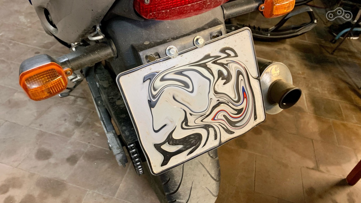 Только номер выдали ещё старого образца, а рамку я уже с уверенностью заказал новую. Ещё с неделю катался вот с таким креплением – даже близко не пытается выпасть.