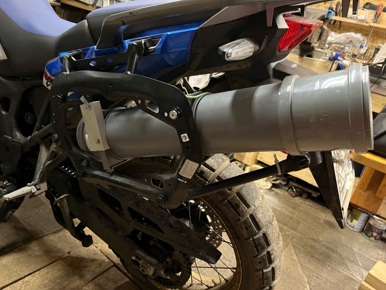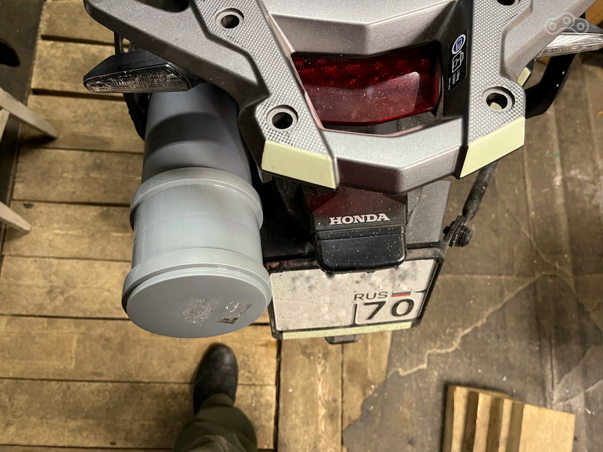 Собственно сабж. Купив данный мотоцикл без кофров, после своей NC, я познал всю боль отсутствия места для складывания всякой мелочевки, которую не жалко и таскать с собой в рюкзаке не имеет никакого смысла. Было решено изучить рынок на предмет каких-то решений. И тут я знатно офигел!!! Даже алиэкспресс просил за обычные тубусы в которые помещается максимум 2литровка от 2600 р. А если посмотреть на брендовые решения… мрак! ценники начинаются от 7000 р. Было решено колхозить из подручных материалов. По итогу купил кусок 110 канализационной трубы, хомуты, заглушки. Все вместе обошлось рублей в 400. Около полутора часов в гараже и первая версия готова. Уже успел опробовать ее в ливень и бездорожье, ведет себя прекрасно!