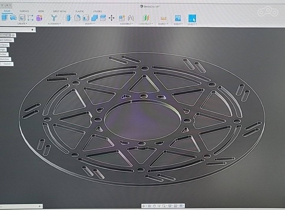 далее 320й тормозной ротор: не нашёл под KLX размера 300мм или 320мм в продаже, а скоба есть. поэтому накидал чёртёж для лазерной или гидроабразивной резки.