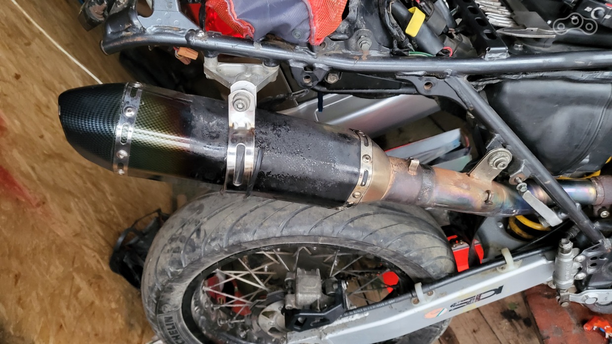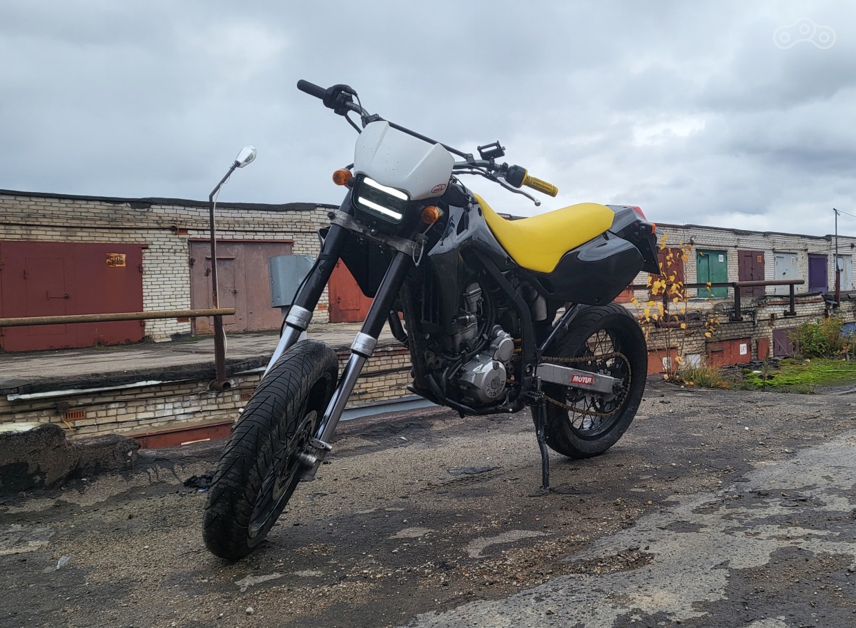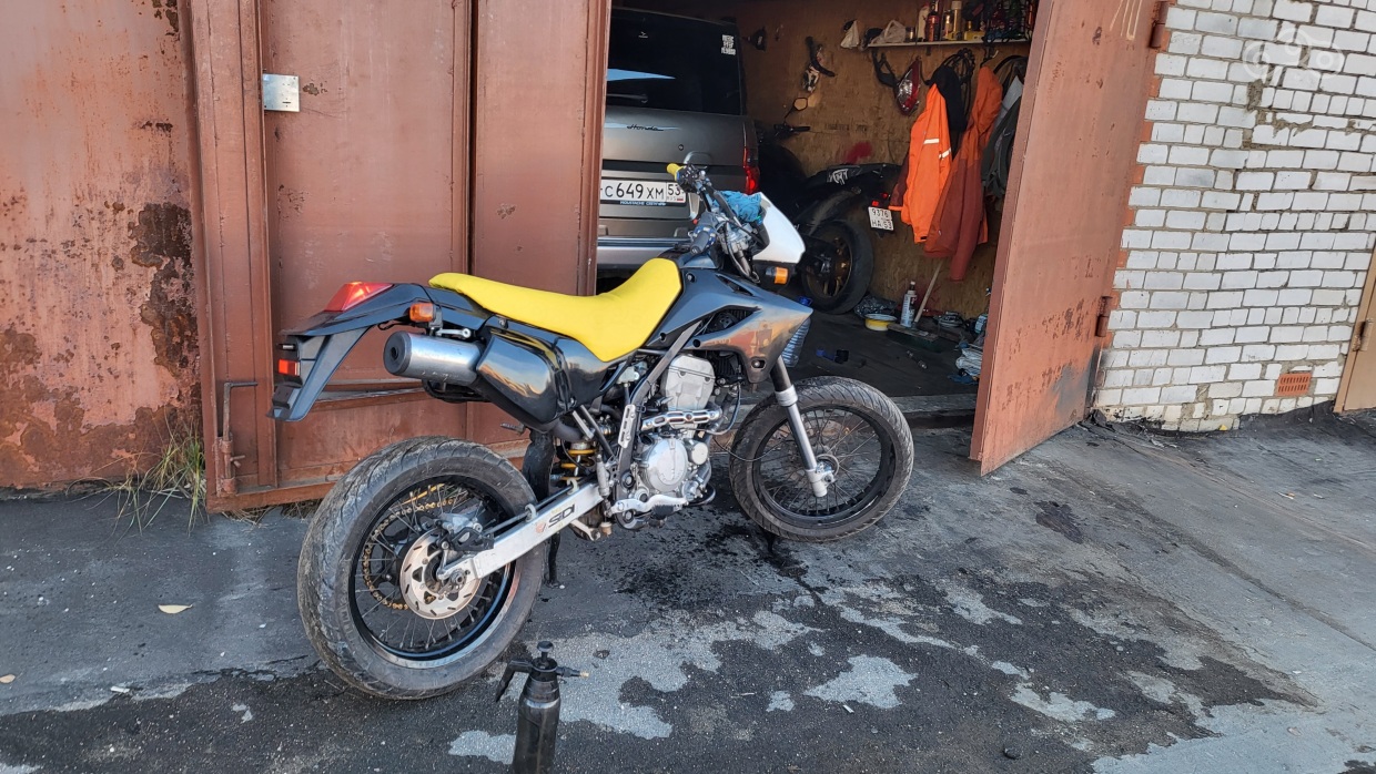 Но подвернулась кава в комплектации D-tracker ( KLX250 на 17х катках ) договорился с продаваном и уехал на своём максискутере куда то в тульскую обл. там я убедился что байк скорее мёртв чем жив .. .но впереди зима да и он ещё как то мог передвигаться сам. Махнулся с предыдущим владльцем Ключ в ключ и попёр обратно 200+ км в сторону златоглавой. надо отдать должное что эта трахома заглохла всего 1 раз, но дым валил сзади такой что я навалил кирпичей но сразу понял что это просто резинка от хомута кЕтайского глушака горит на раскалённом металле этой чудо конструкции выпускного тракта из поднебесной, которая явно не справлялся с Переобогащённой смесью .
