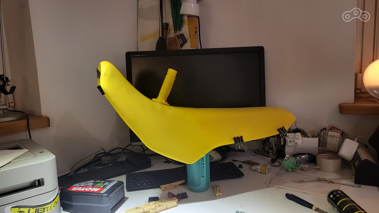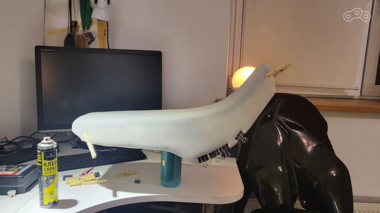 немного наксячил - надо было шлифовальным кругом уменьшит толщину к-флекса у начала сидушки - тогда бы нновая шкура легла идеально. но Хрен бы с ней, это Эндуро а не номинант десятилетия на кастом конвенции, хотя ..... хм ))