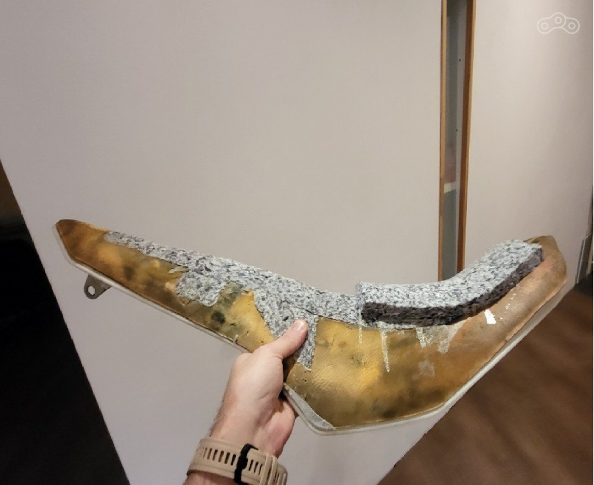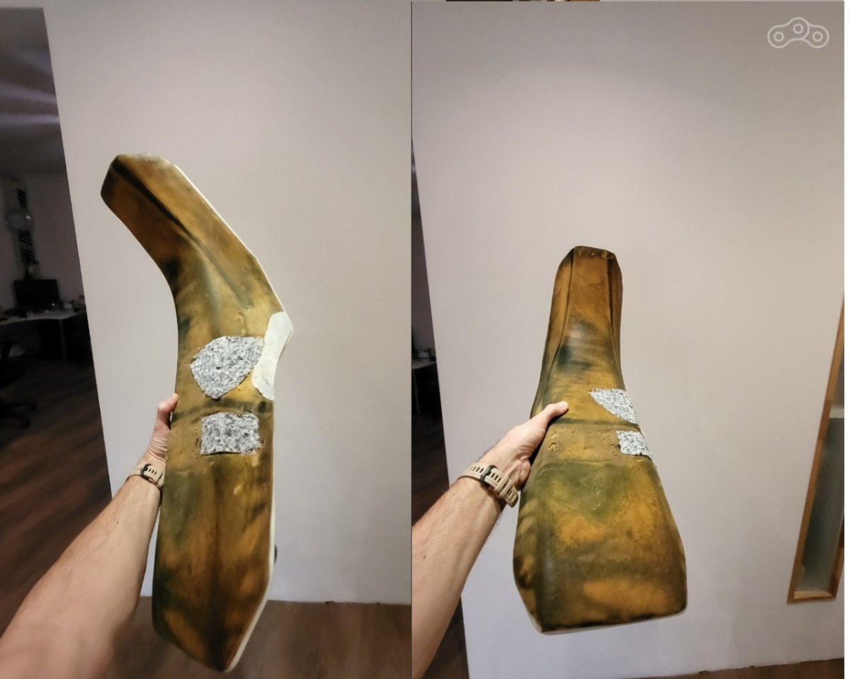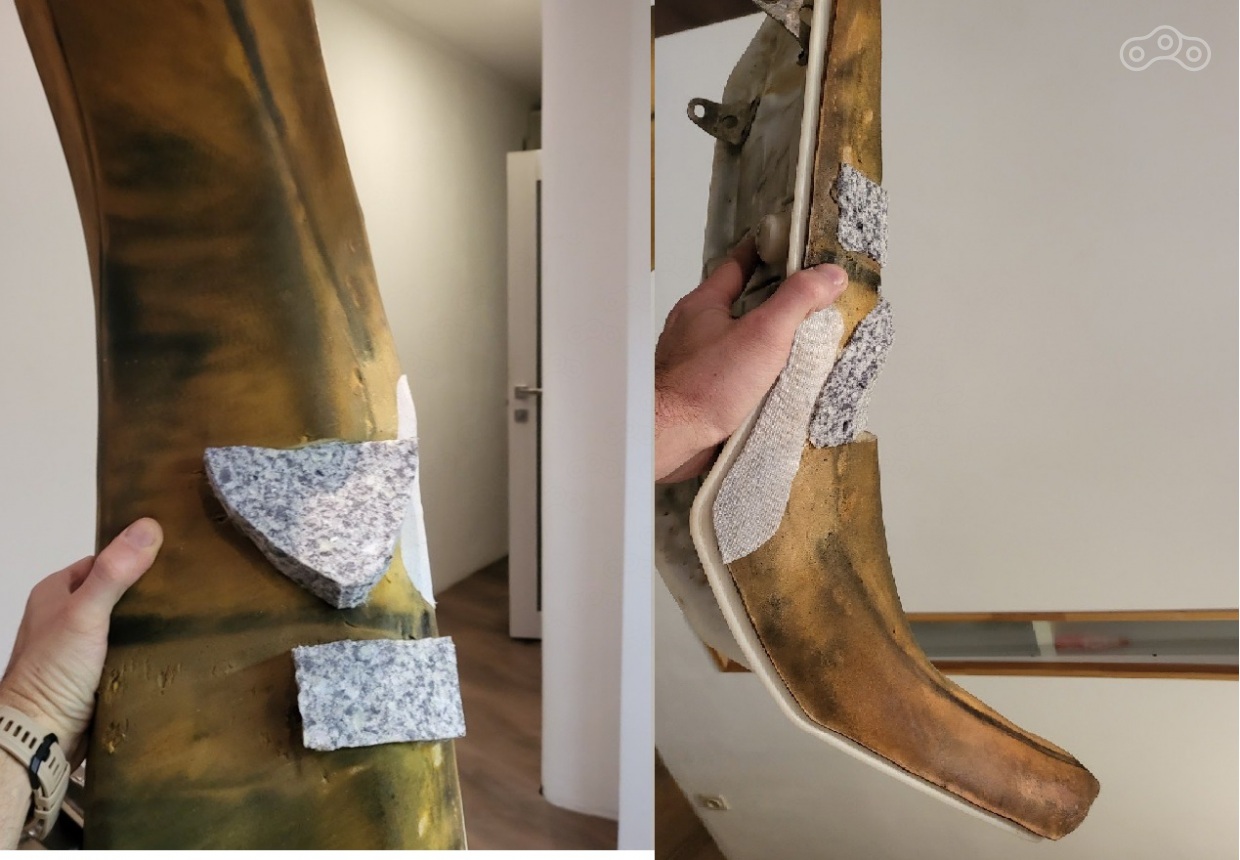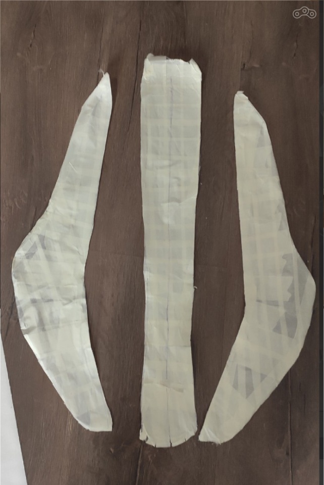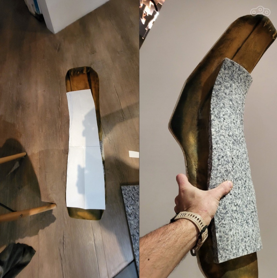 далее можно на глаз, но я сделал трафарет из бумаги по форме выкушенной части ( которую уже вывел в плоскость ) и по этому трафарету вырезал из Поролона донорские куски.