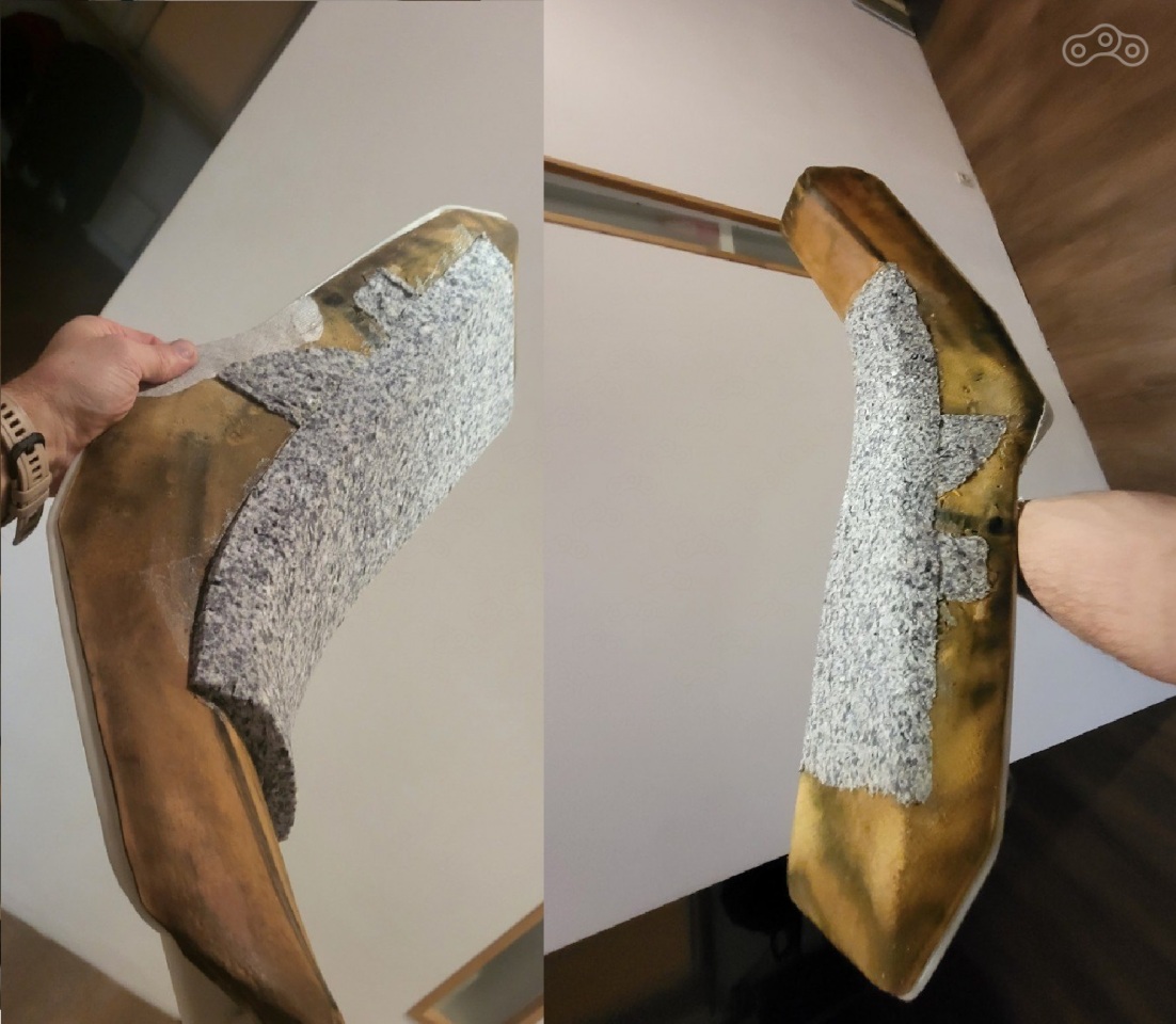 тут осноным инструментом выступила кухонная тёрка для овощей. у неё есть одна сторона с острыми мелкими зазубринами наружу для жёсткого сыра( Если не ошибаюсь ) - вот она идеально подошла для околофинишной корректировки формы поролона. Вобще очень хорошо с этим делом справляется Болгарка с ( Внимание! ) стёртым почти в ноль лепестковым наждачным диском. потому как если возьмёте свежый диск - он просто вгрызётся в поролон вырывая куски.