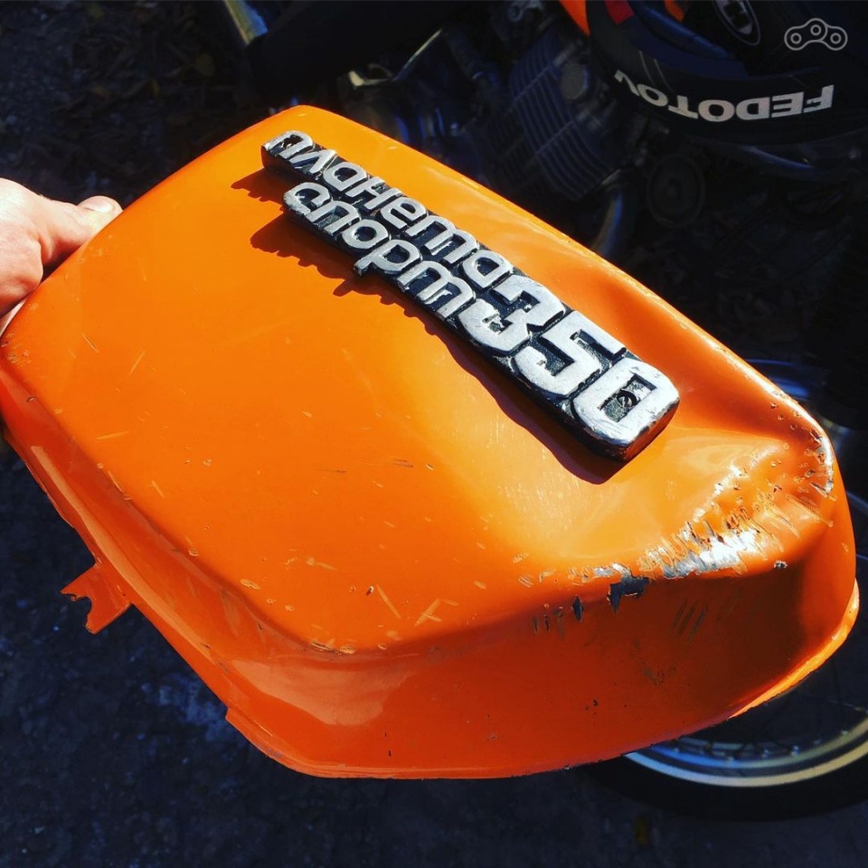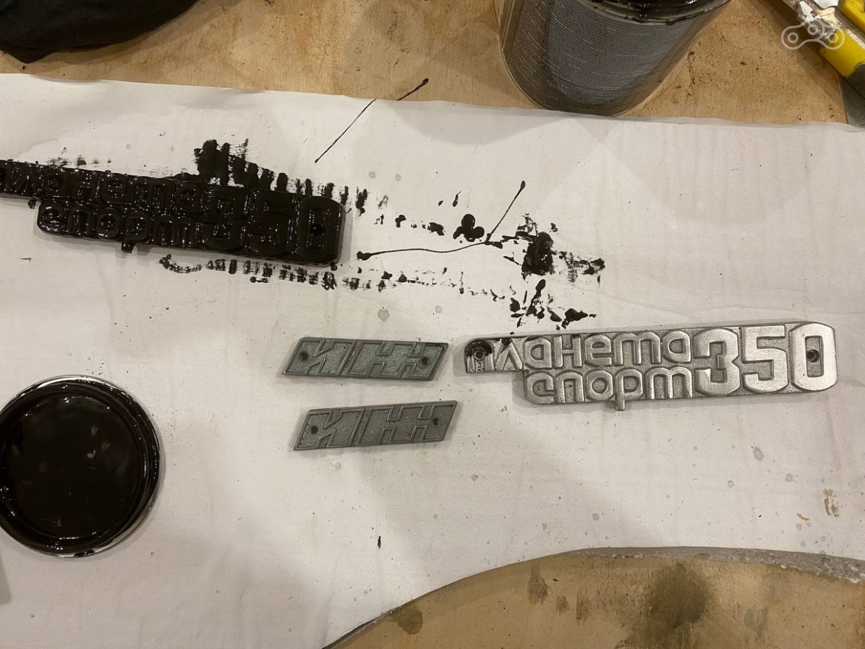 Когда коту нечего делать, что называется. Отшлифовал, подстучал и залил акриловой краской. Получилось очень даже. А заодно - освежил шильдики, вычистив их от старой краски и облив новой. Теперь мотоцикл выглядит идеально. Почти. Есть еще кое-что, что мне хочется поменять, но об этом как-нибудь потом.