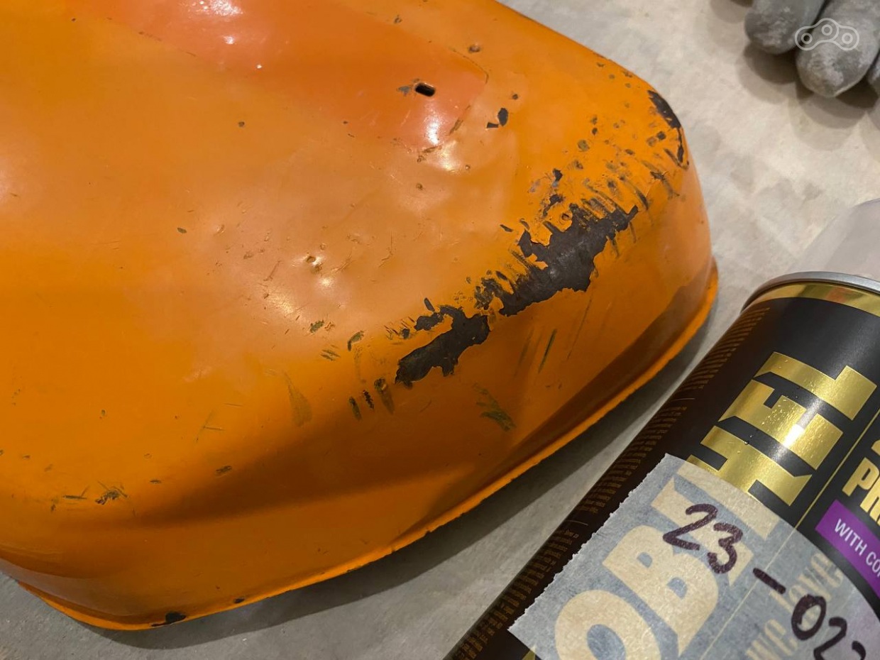 Друзья, из числа местных мотоциклистов, прямо в гаражах приварили кронштейн, а заодно - отрихтовали крышечку молотком. Получилось настолько хорошо, что я ничего большего делать с ней не стал - шрамы же украшают. Еще и поржавела благородно, короче, все как надо. И было бы дальше, если бы не у меня не зачесались руки.