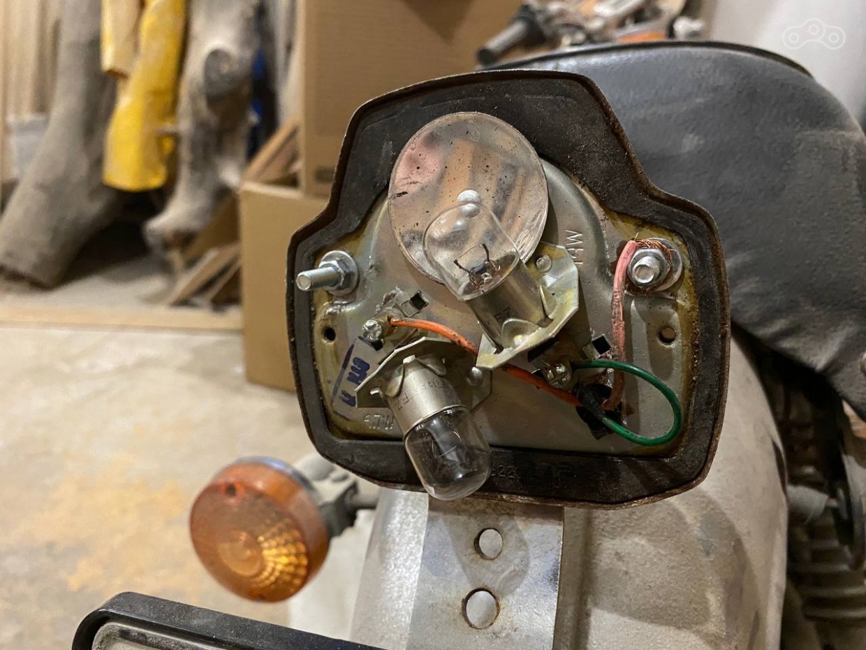 Вдобавок, мотоцикл хотелось ну хоть чуть-чуть изменить визуально, ибо так долго у меня обычно никакая техника не задерживается. В итоге заказал у друга оригинальный советский фонарик, который он купил на Авито и заслал мне.