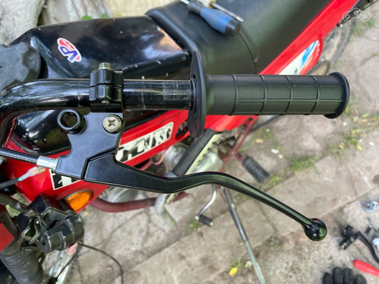 На мопеде стояли разные рычаги. На сцеплении вообще неродной, но складной, а рычаг тормоза уже видал столько за свою жизнь, что его было откровенно жалко. Вот и решил я, коли уж валяются два рычага - то применить их на этот мопед.