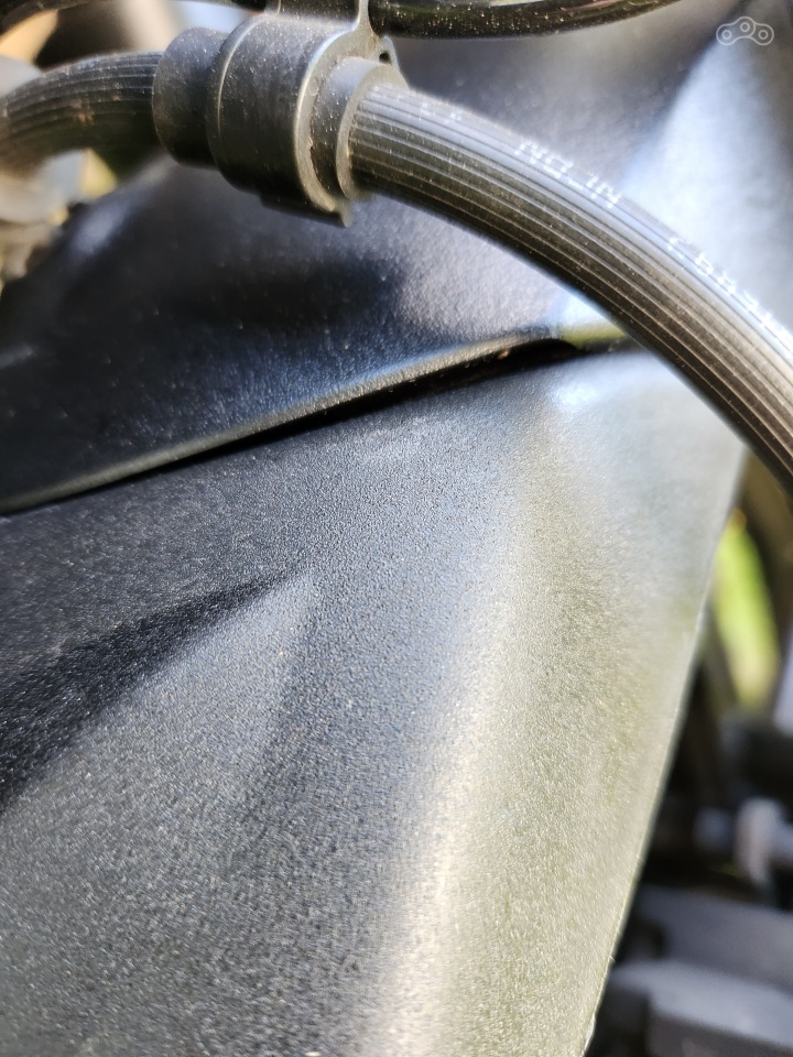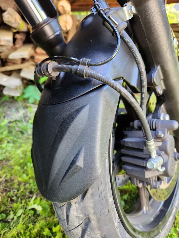 Выехав из мотосервиса, на чистом и красивом мотике, в прекрасную весну, я тут же попал на какой-то ремонт. Реки говн, воды и строительной жижи устремились мне на встречу. Проехал я этот филиал дерьмодемона очень аккуратно и мотик, как мне показалось, был по прежнему чист и сияющь. Однако, взглянув в гараже на радиатор я приуныл. Широкая полоса каплевидного дерьмища покрывала радиатор точно посередине, аккурат за передним колесом. Решение было принято молниеносно! Прошерстив местные магазины на предмет брызговика, и не найдя ничего подходящего, заказал из Китая.