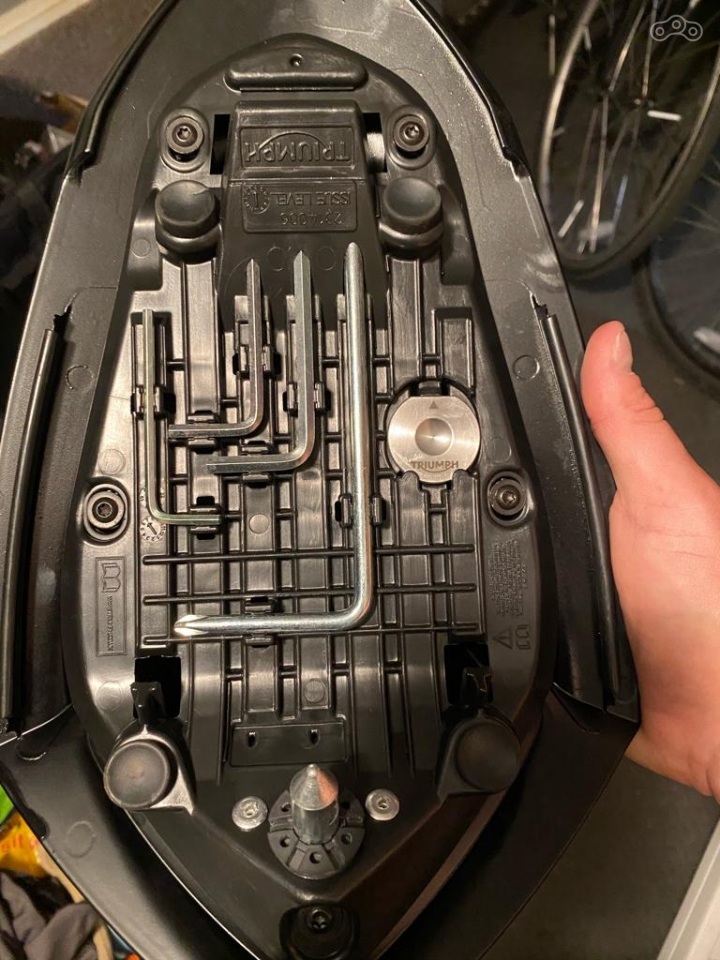 А ещё оно усугубилось дополнительным поводом для переживания. В штатном наборе инструментов Street Triple RS есть ключик для регулировки подвески, похожий на большую монету: