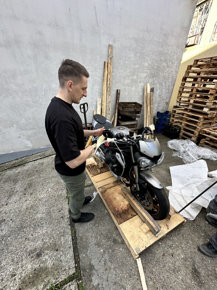 Далее на фото с погрузки в контейнер в Японии она торчит уже ближе к краю. Мы её теряем!