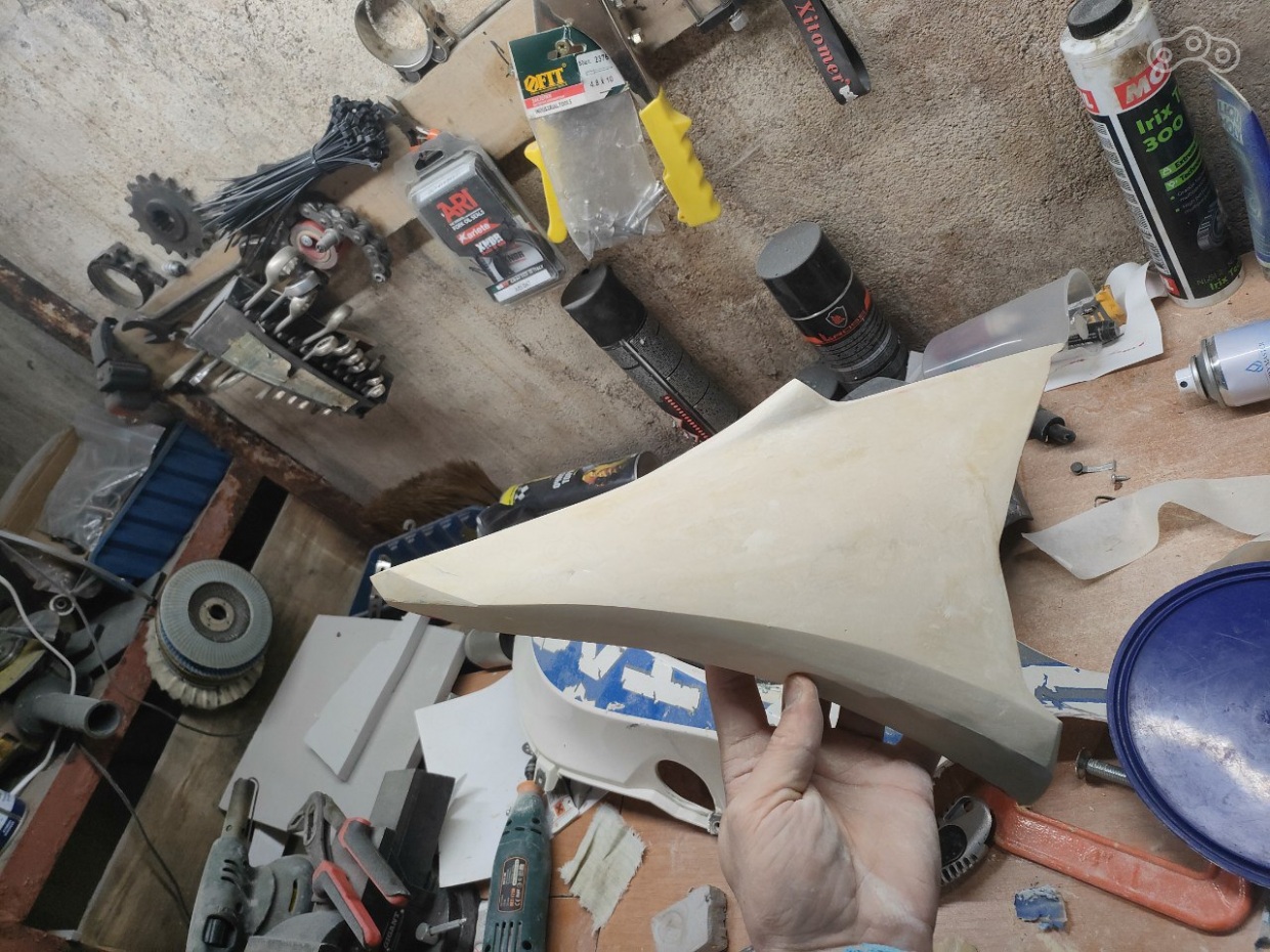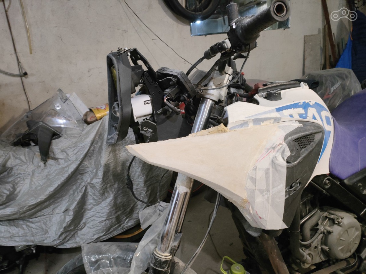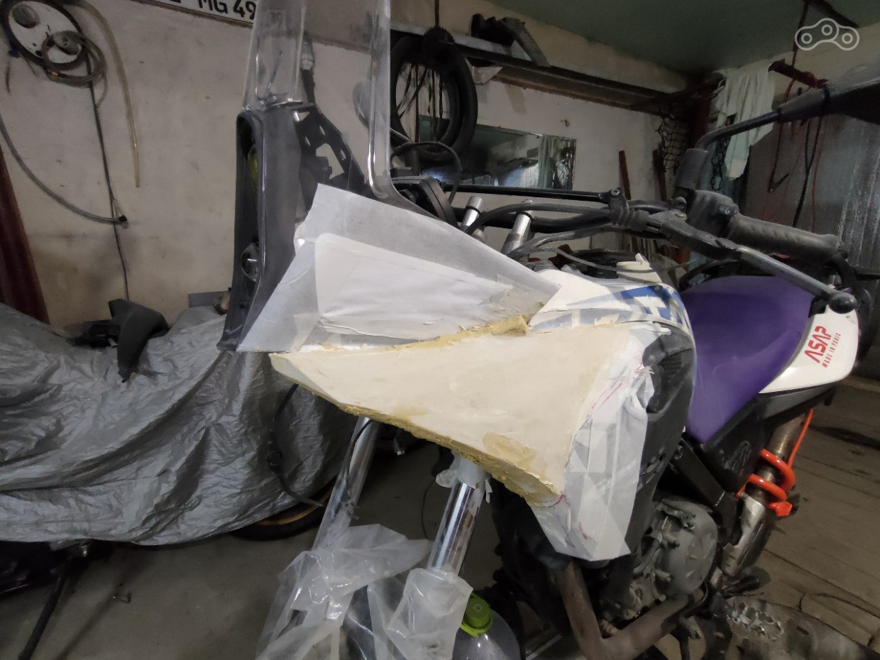 долго думал как же прикрыть весь тот визуальный диссонанс, образованный КТМовским Лобашом и пластиком Фальшбака Баварского трактора ., в итоге решил пойти самым сложным пуём - Скульптуризм . .или как тамм его..