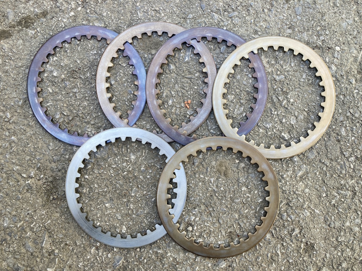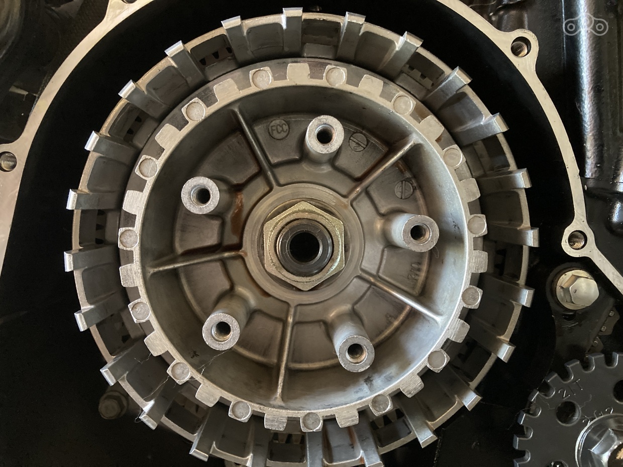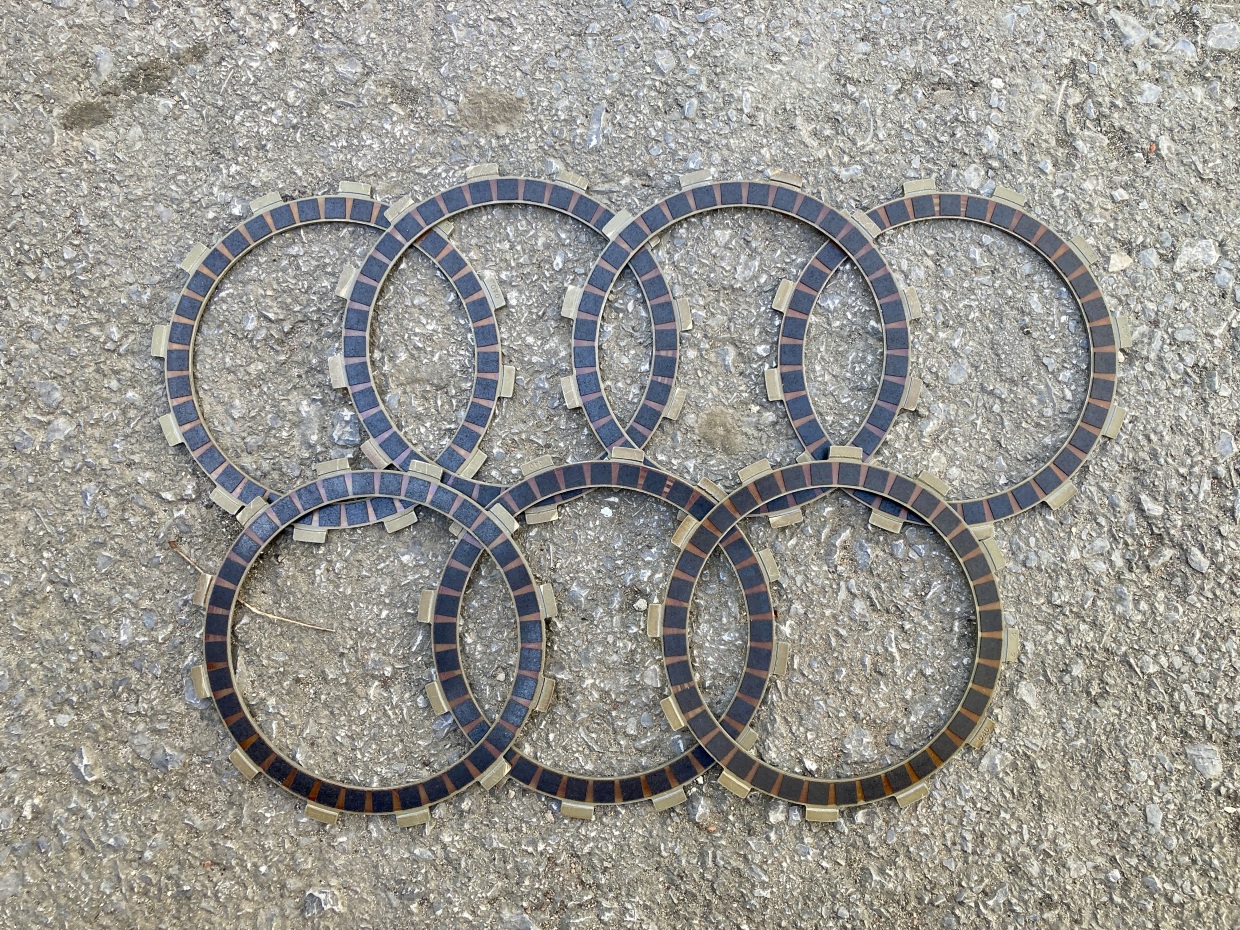 Слил масло, скинул крышку (для этого пришлось снимать дуги) и промерил диски с пружинами. Как и ожидалось, все кроме пружин перешагнуло сервисный лимит. EBC найти не смог, поэтому заказал фрикционы Vesrah, а промежуточные диски TRW. Так же взял ноунеймовскую прокладку и новый тросик сцепления. Тросик турецкий, но по длине и диаметру точь-в-точь оригинальный.