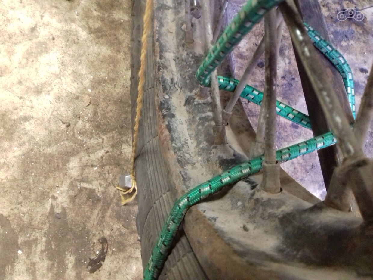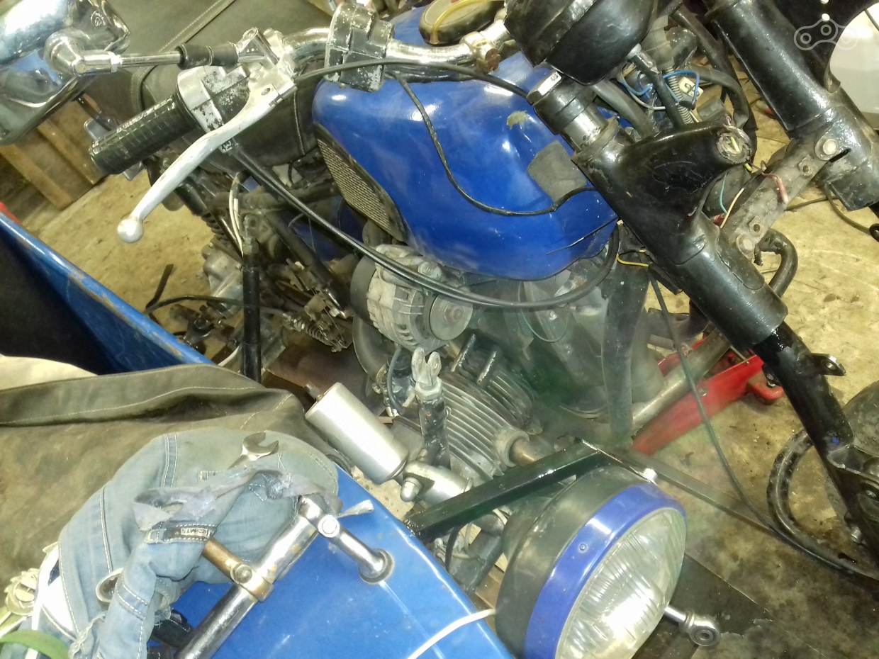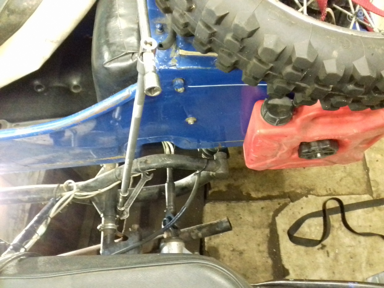 Всё. Развал теперь у нас в нулях (хотя и положен для одиночки в минус два градуса), теперь схождение. Схождение у мотика было конское. При норме разницы в 10-20 мм между осями (схождение на перед) у меня было около 50 мм. Для регулировки схождения нужно отдать растяжки: