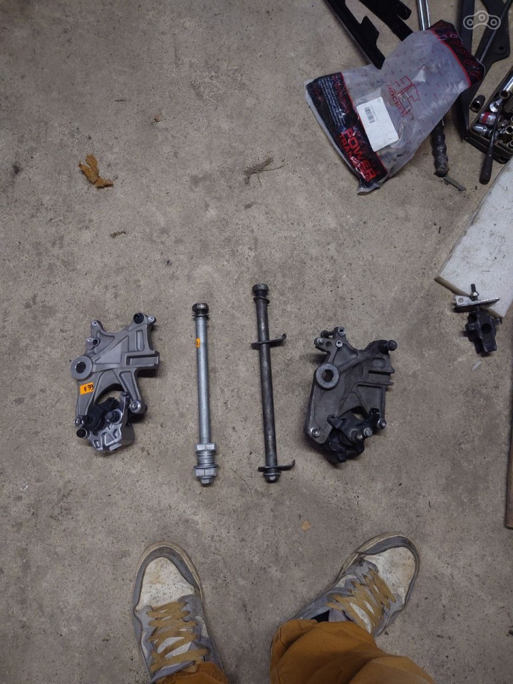 На этом Лёгкая часть закончилась. . попытался вставить суппорт и вот это вот всё. суппорт не встаёт - не влазит , да и ось слишком длинная , и места под датчик АБС нет .. . как так то ? покурил картинки интернетов - оказывается на более новых хондах АБС на датчиках холла а они более компактные, а новый маятник сильно уже. и места там с Гулькин х...