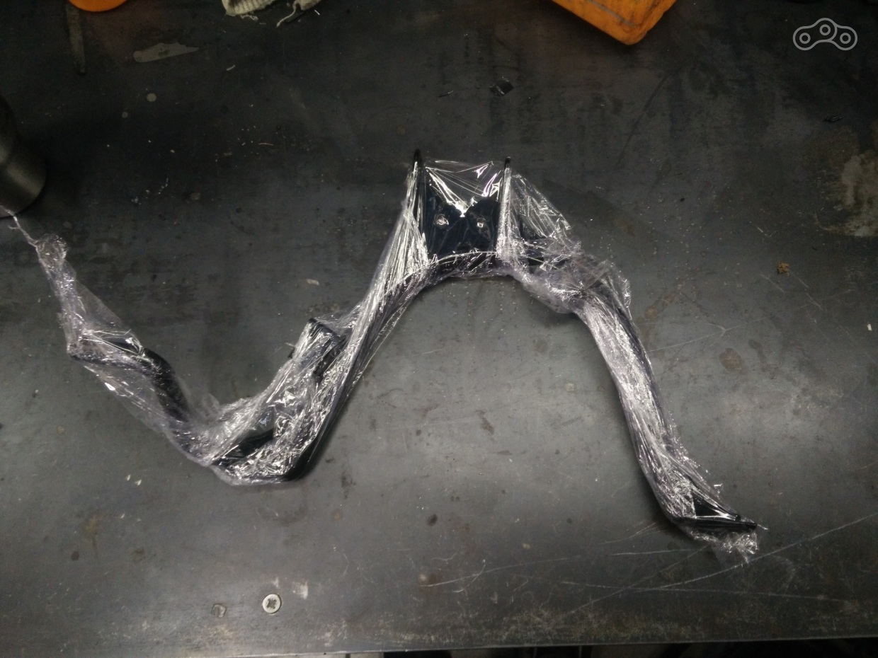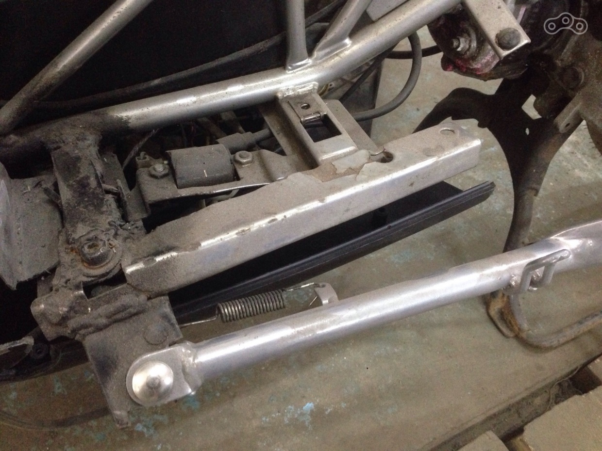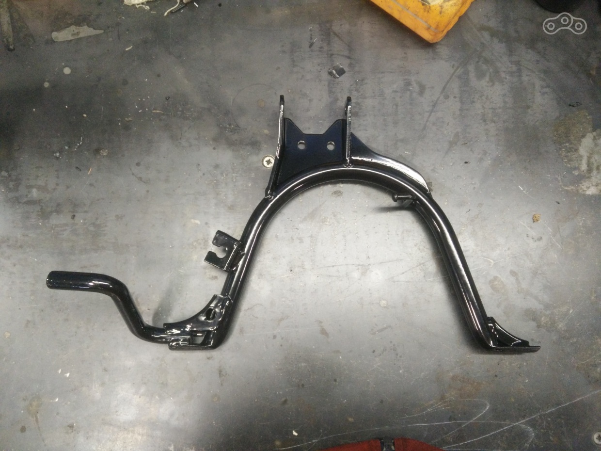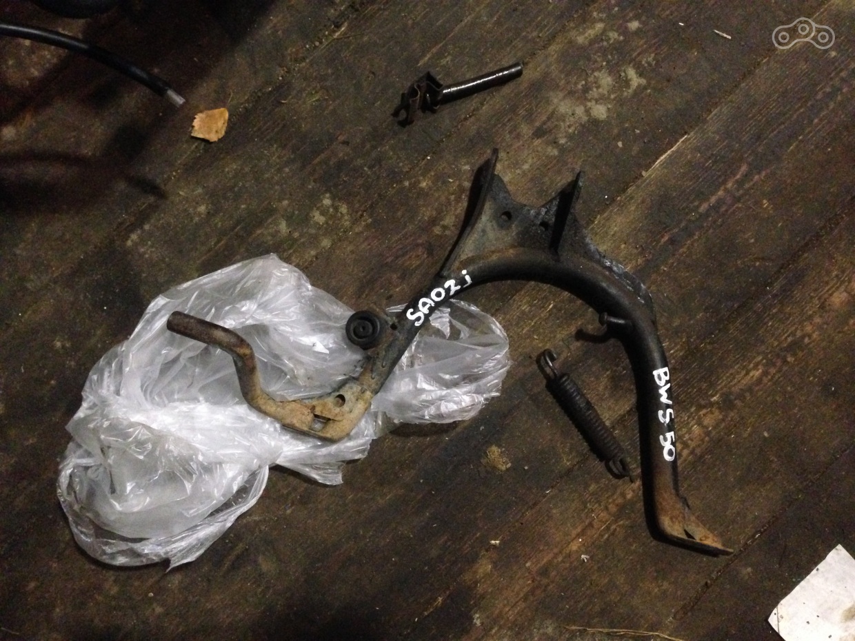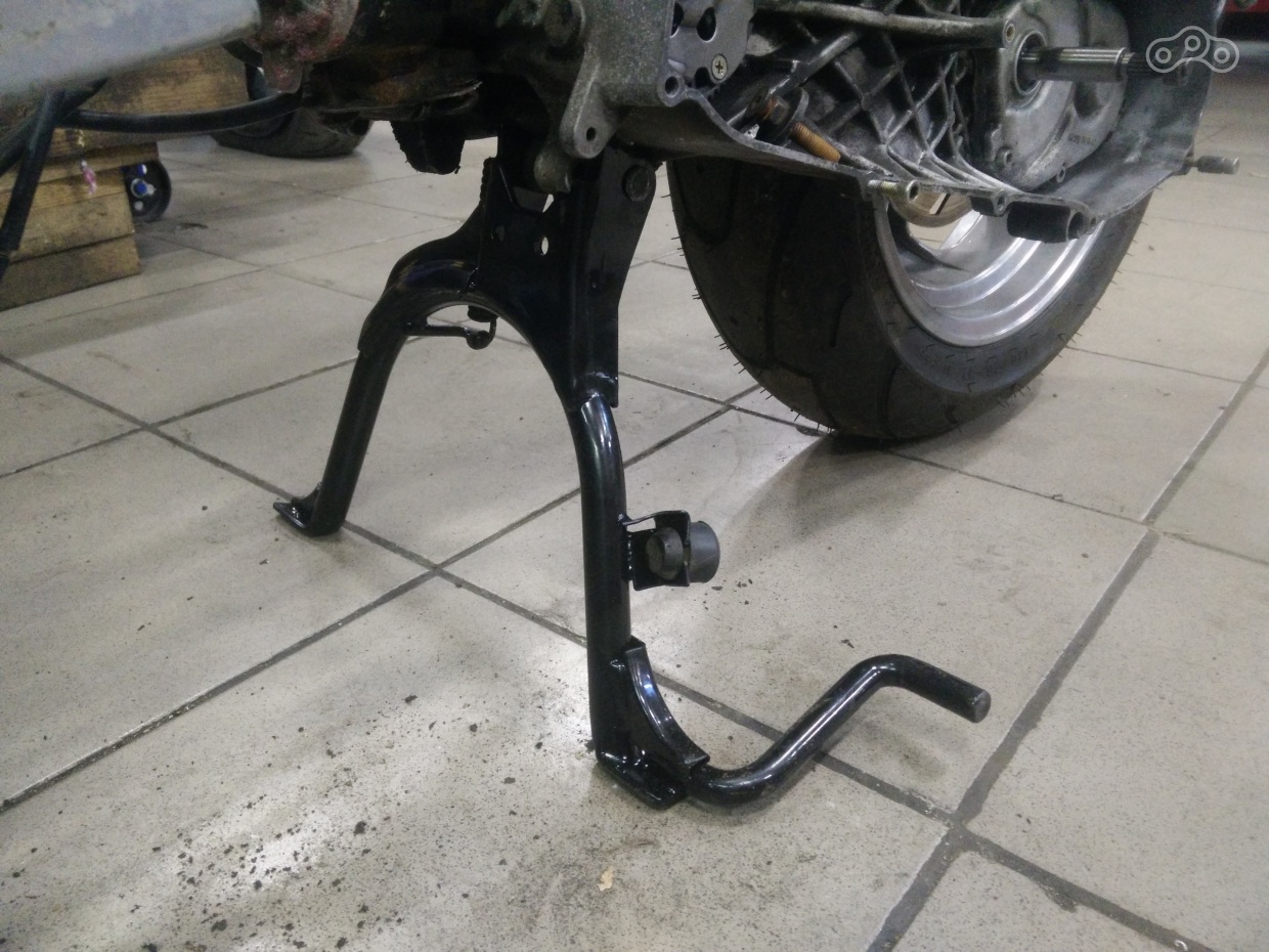 Пластик собран, нужная часть рамы без колхоза ждет своего часа, чтобы занять нужное место, а я между делом купил центральную подставку. С ней все просто, ибо двигатель унифицирован с ямахой, подставка подошла от BWS, встав на родные крепления.