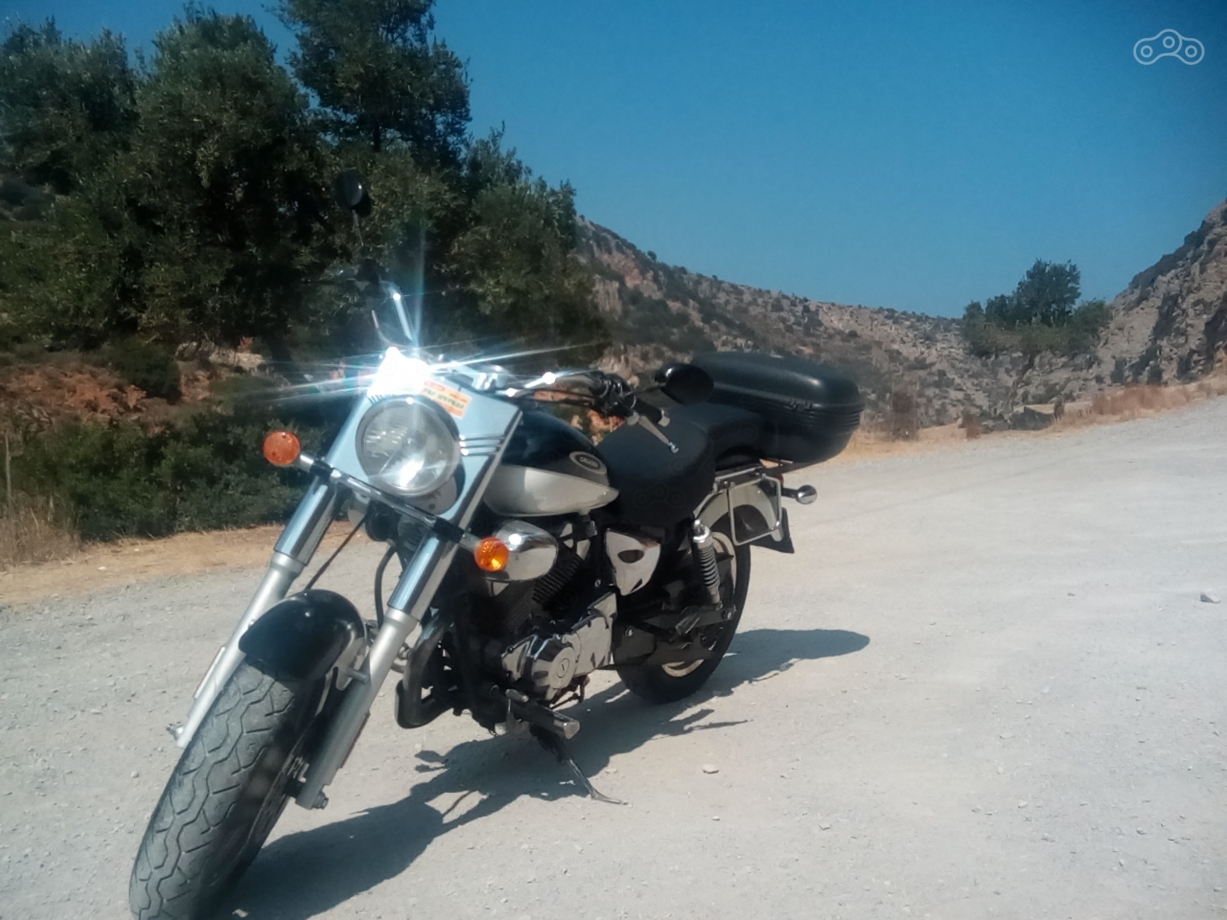 Вариантов прокатных мотоциклов несколько меньше, чем вездесущих скутеров и тех же квадриков. Несмотря на наличие хороших дорог много эндуриков: от лёгких китацев и вплоть до гусей. Я же искал обычный классик или круизёр. В итоге отказался от ямах и кавасак в пользу 250-кубового китайца из-за наличия на последнем… заднего кофра. Возможность закинуть в него бутылку воды, вещи, покупки, а на стоянках оставить там шлем – делает поездку гораздо более комфортной. Да и цена на китайский пепелац была меньше. Знакомьтесь: Keeway Cruiser 250