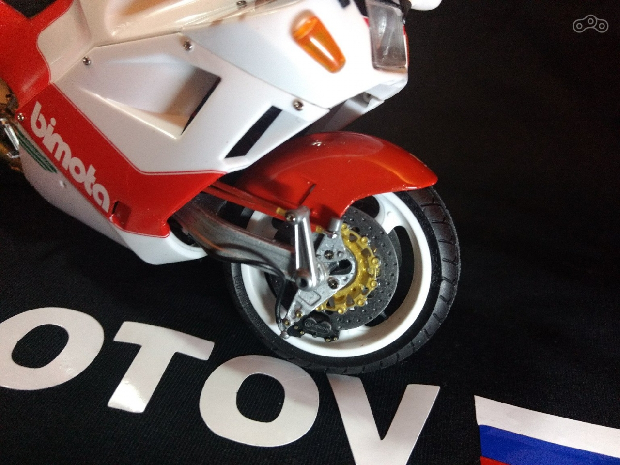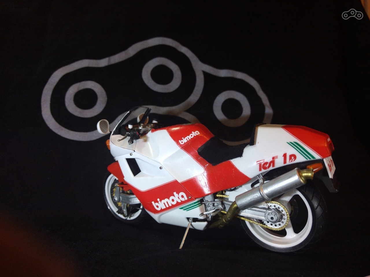 Влюбиться в Bimota Tesi не трудно. В действительности для этого достаточно просто увидеть этот мотоцикл, а мне же довелось познакомиться с ним довольно близко во время одного из осенних тестов. Именно поэтому я и не смог пройти мимо сборной модели Bimota Tesi 1D 906SR в масштабе 1/12.