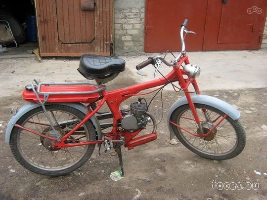 На мои вопросы что это, мне сказали что это техника младшенького . Мопед Рига 11 . Педальный конь однажды дал дуба и был похоронен в недрах гаража, а младшенький пересел на ИЖа .