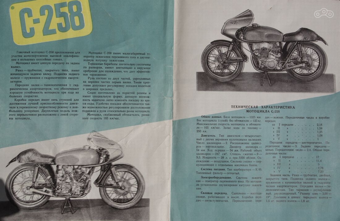 Двигатель С - 157 с размерностью 58,5 на 46 мм. имел объем 174 куб.см и развивал мощность 14,5 л.с. при 10000 об/мин. Этого хватало, чтобы разогнать мотоцикл до 140 км/ч.