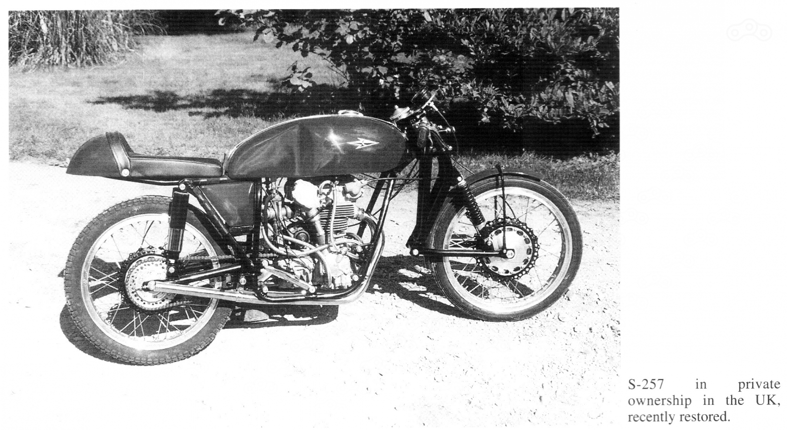 Двухцилиндровый двигатель квадратной размерности 54 на 54мм объемом 254 куб.см. развивал мощность 30 л.с. при 9900 об/мин. Максимальная скорость мотоцикла массой 125 кг составляла 165 км/ч. Было сделано четыре или пять С - 257, и вскоре его сменил С - 259.