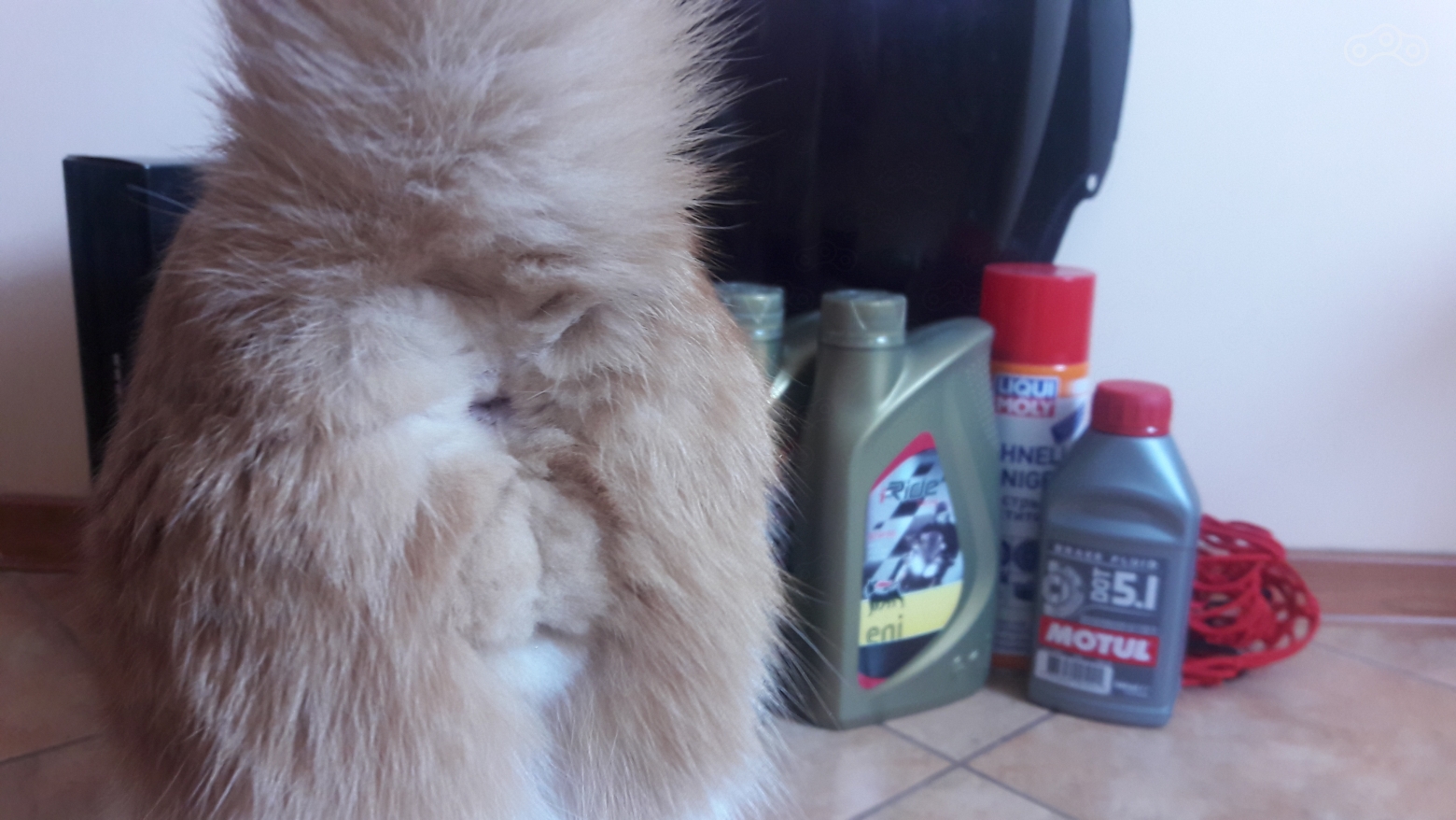 Есть у меня тут один рыжий помощник, ни минуты не оставлял меня наедине с мотоциклом.