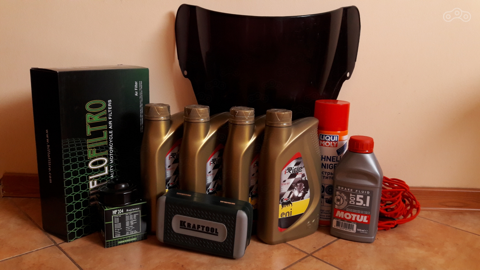 Первое в списке: замена воздушного фильтра и ветрового стекла. Штатное "стекло" предназначено лишь для поездок на баке, в пробках, в гараже, под водой, где угодно. Дискомфорт конкретный! Купил БУ горбатое, забегая вперед, скажу - разница крайне ощутимая.