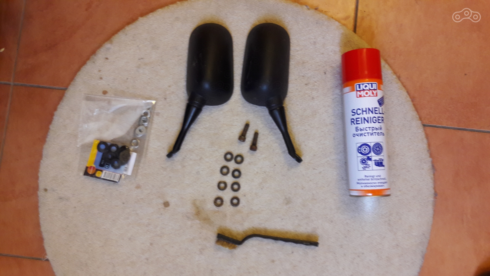 Отдельная тема - зеркала. Часто бывало, на скорости складывались, приходилось очень туго затягивать. Решил разобрать почистить, но от резиновых демпфирующих прокладок остались ошмётки. В леруа нашел и новые шайбочки, и резиночки. Болты посадил на синий фиксирующий гель - полёт нормальный, даже можно туда-сюда поскладывать;)