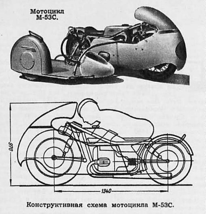 Ходовая часть имела большие отличия от М - 52С. Совершенно новая рама обеспечивала низкий силуэт и лежачую посадку гонщиков. Задняя подвеска стала маятниковой, а передняя рычажной. Вес М - 53С увеличился на 30 кг по сравнению с М - 52С. Мотоциклы получили заслуженное признание на всесоюзных и международных гонках.