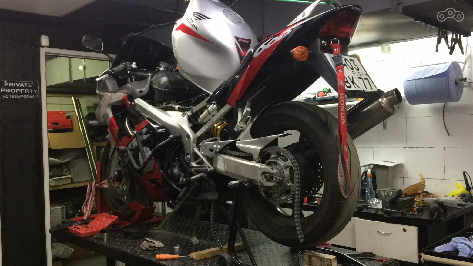 Сняты дуги, заменены болты с гайками, перетянуты крепления двигателя, новенькие цепь D.I.D. и звездочки JT.