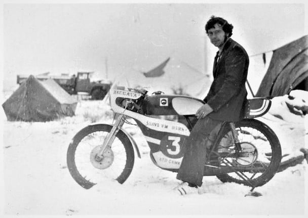 Курьезное фото - Вадим Силов на Ковровце в снегу. На открытии гоночного сезона 1988 года в Каунасе пошел снег и гонки не состоялись.
