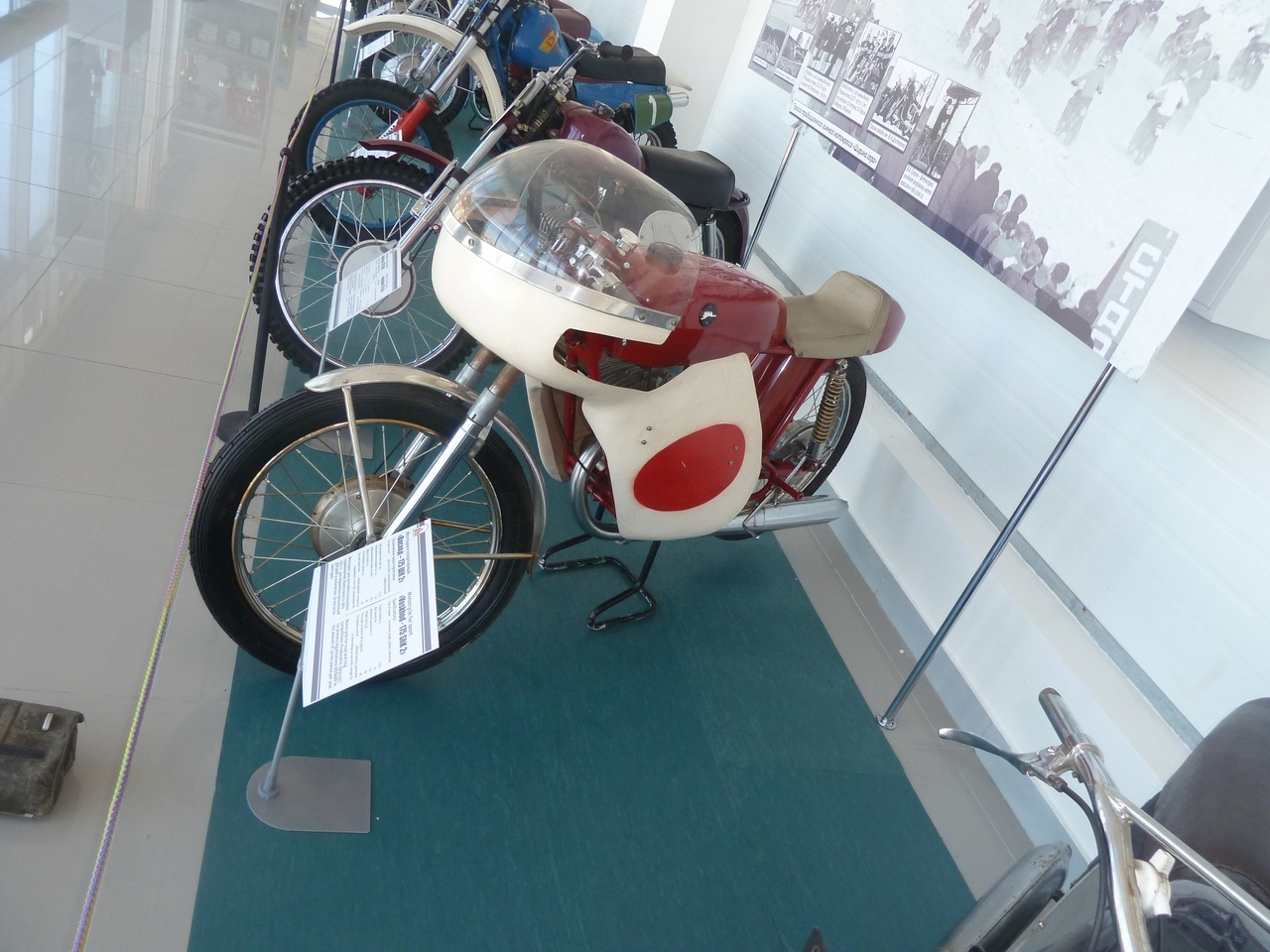По фото можно только понять, что мотоцикл имел 19 дюймовые колеса, ступицы и тормозные механизмы, которые нашли применение на более поздних ковровских мотоциклах.