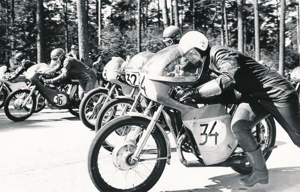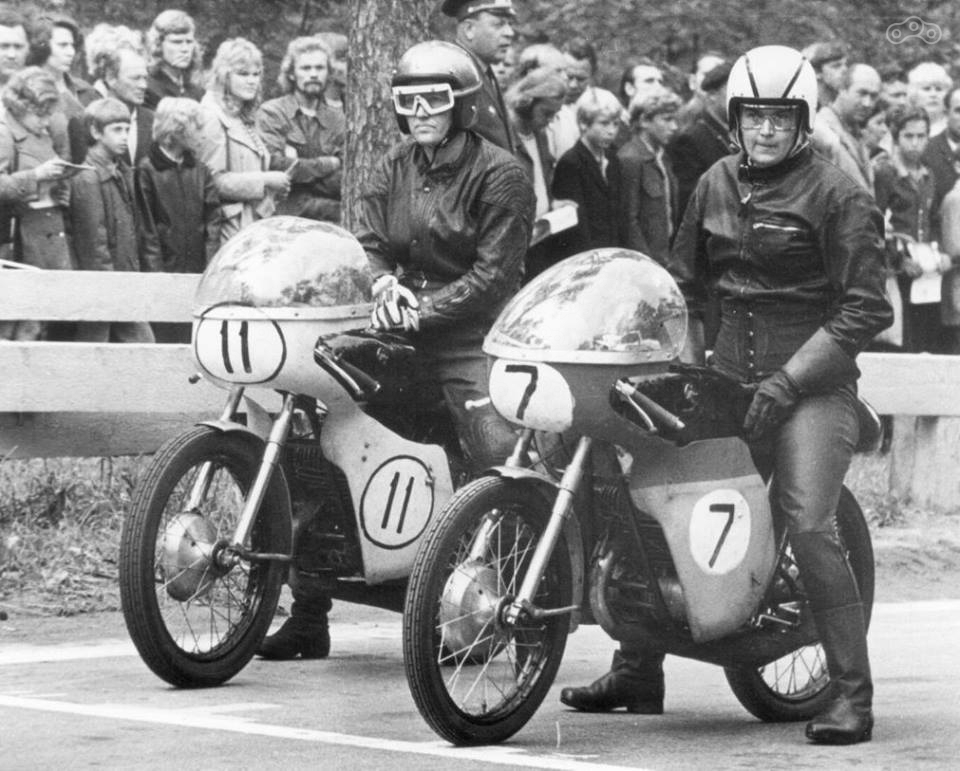 На этой фотографии спортсменки # 11 Valentina Sepala, # 7 Luule Tull. На мотоциклах уже установлены резонаторы.