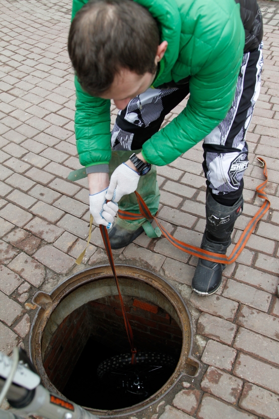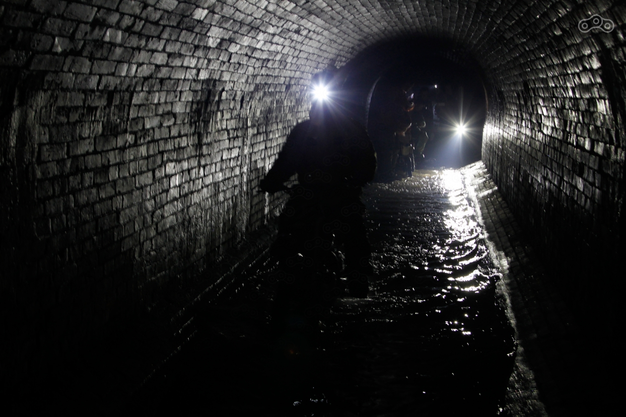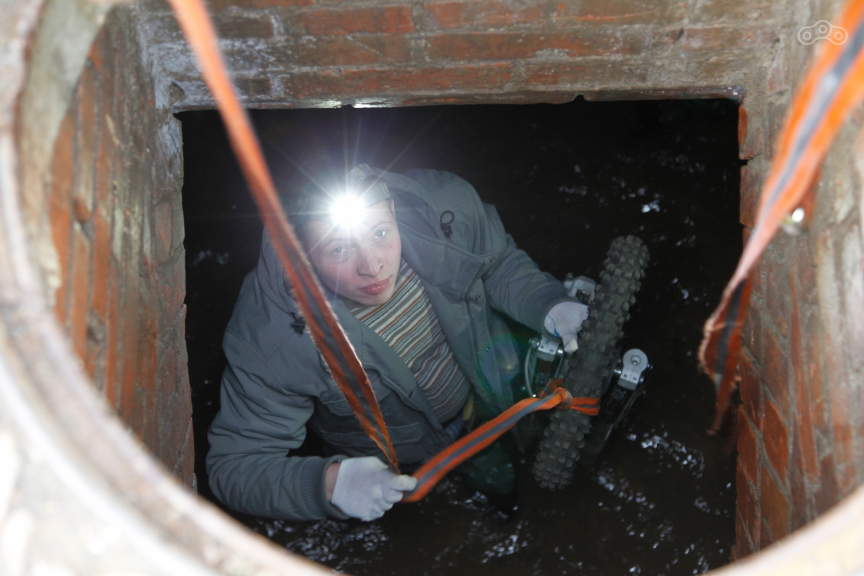 Подкатив к месту встречи мы встретили остальных участников подземного трипа и, еще раз обсудив детали, одевшись отправились к ожидавшей нас крышке люка. Мы с напарником Ваней спустились первыми в сырую темноту, и, пытаясь привыкнуть к кромешной темноте, с крошечным пятачком света, пробивавшемуся через люк, принялись принимать детали и инструмент.