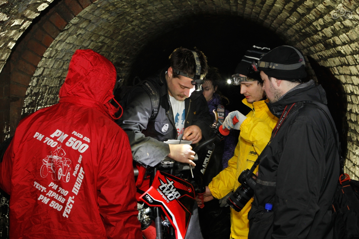 Поэтому через 10 минут каменные своды сотрясли раскаты прямоточного выхлопа, расходясь по тоннелям эхом. Аппараты, не очень-то тихие даже на улице, в подземелье казались оглушительными, из-за чего приходилось кричать, но опыт общения на рок концертах был у всех, так что с этим проблем не возникло, а вот с маскировкой – наоборот. Уверен, грохот, доносившийся из под земли, заставил понервничать не одну бабушку, проходившую над нами.
