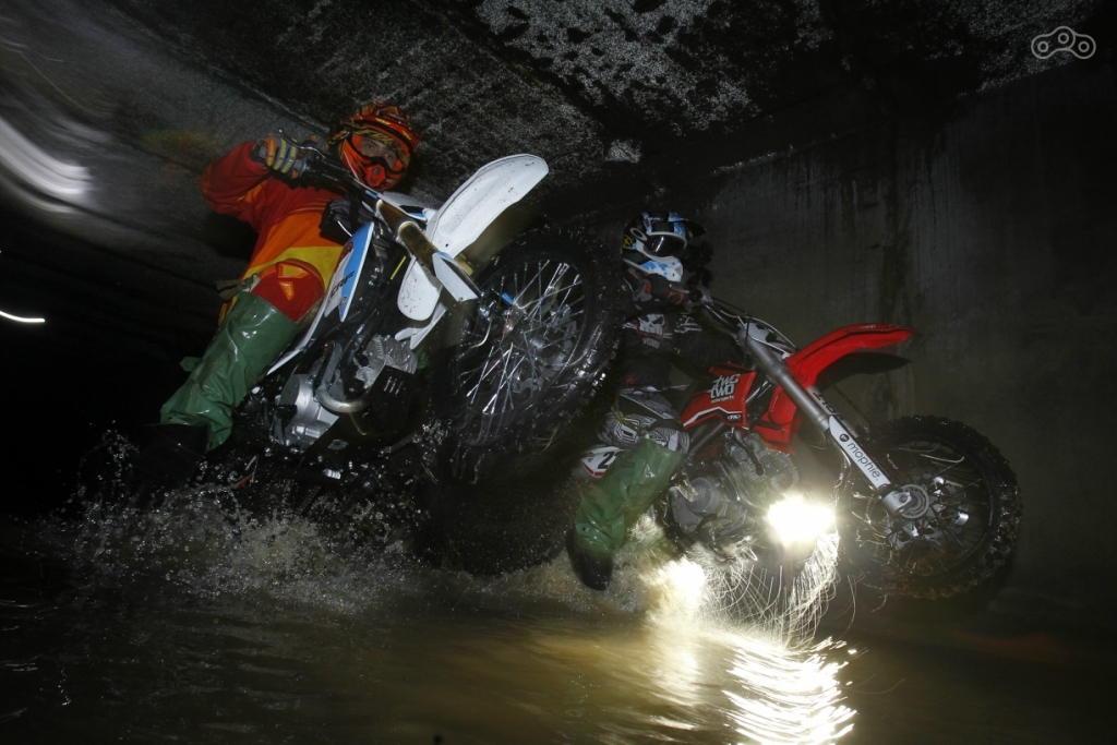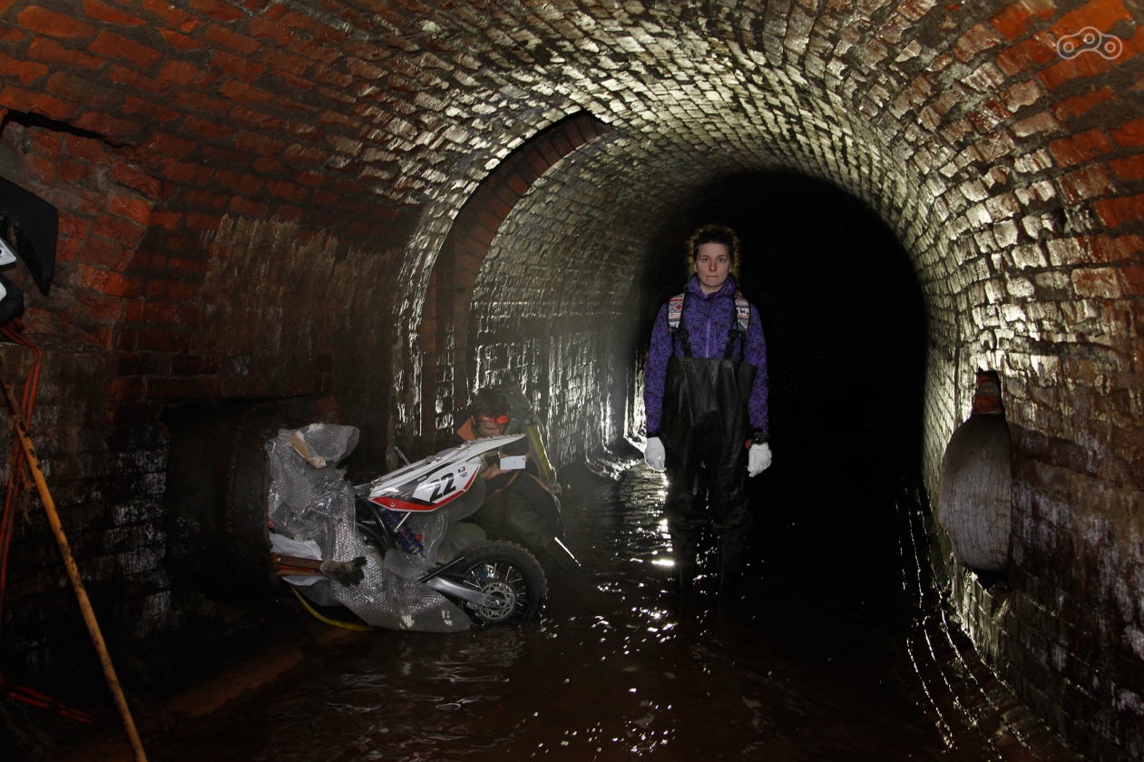 Понимая, что еще немного и нас смоет, принялись за разборку питбайков. Рук не хватало, ведь теперь нас осталось всего пятеро, и процесс рисковал затянуться, если бы не одно обстоятельство. Новый, незнакомый доселе шум, раздававшийся где-то далеко вверх по течению, становился все громче. Напрягся даже Кирилл, «обрадовавший» нас: где-то началась откачка грунтовых вод, поэтому у нас есть от силы десять минут, поистечении которых воды здесь будет метр-полтора, а крепчавшее течение не давало ни малейшего повода усомниться в его словах. Оценив эффект, который его слова произвели на нас, он добавил, что смыть нас не смоет, ибо не далеко ответвление, в котором можно укрыться, но вещички лучше вытаскивать поскорее.