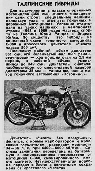 Необходимость такого мотоцикла давно назрела - спортсменам был нужен мотоцикл, выпускающийся пусть не массово, но хотя бы мелкосерийно. Серпуховский завод к началу семидесятых отошел от мотоспорта, а другие производители не проявляли интереса к производству гоночных мотоциклов. Такая ситуация заставляла спортсменов выступать на устаревшей технике или даже использовать самодельные конструкции. Например, в заметке журнала "За рулем" рассказано об одном из таких мотоциклов. Его создатели, великие Юри Рандла и Эндель Кииса в представлении не нуждаются.