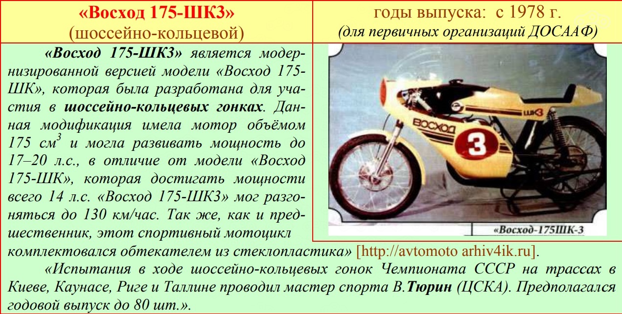 Продержался Восход - ШК3 в производстве до 1980 года. Конечно, наши гонщики использовали их еще долгое время.